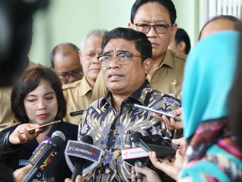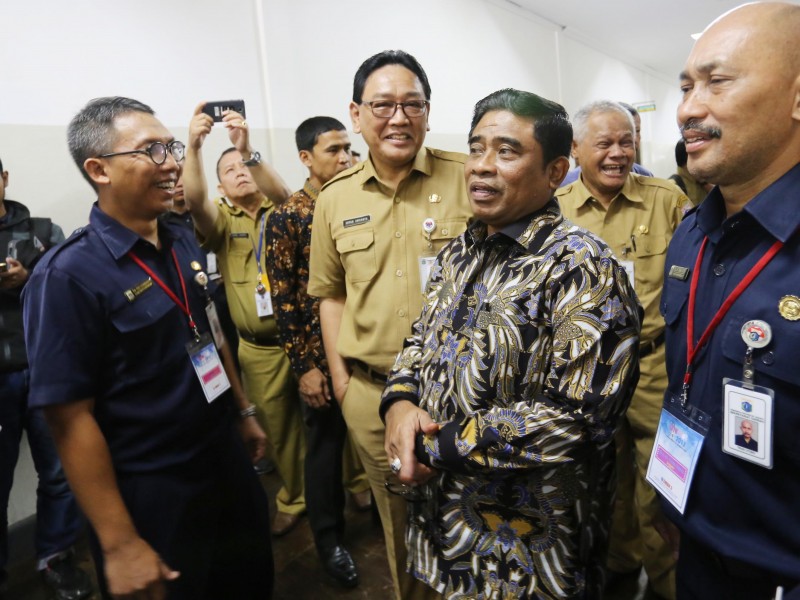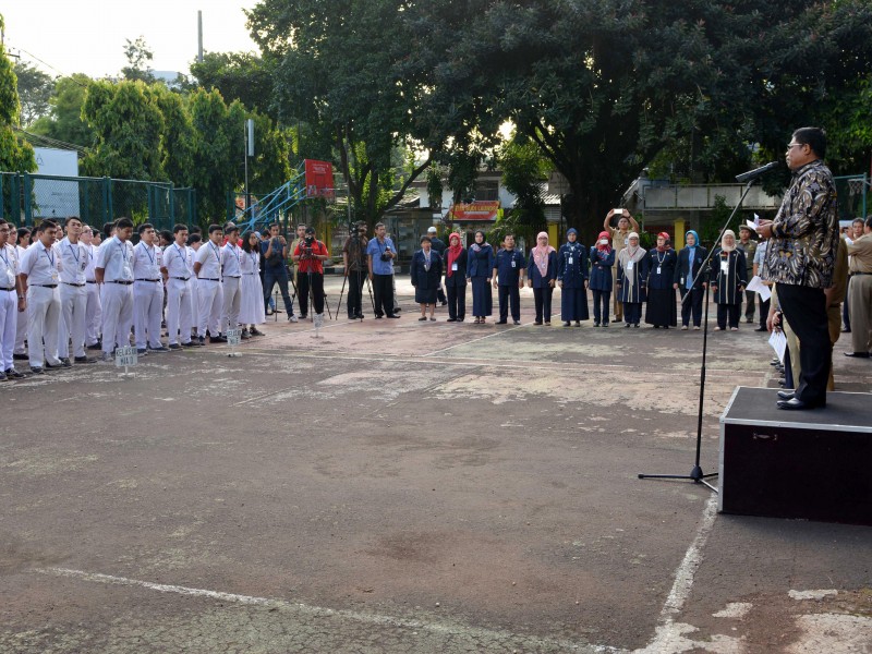 Pelaksana Tugas (Plt) Gubernur DKI Jakarta, Sumarsono meninjau pelaksanaan Ujian Nasional Berbasis Komputer (UNBK) tingkat SMA di SMAN 3, Setiabudi, Jakarta Selatan, Senin (10/4). (Foto: Punto/beritajakarta.com)
