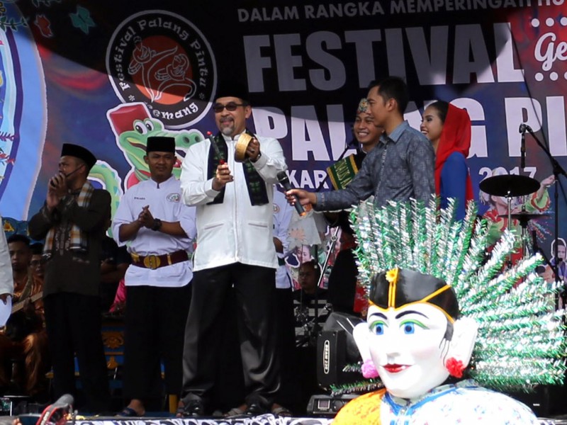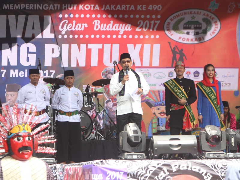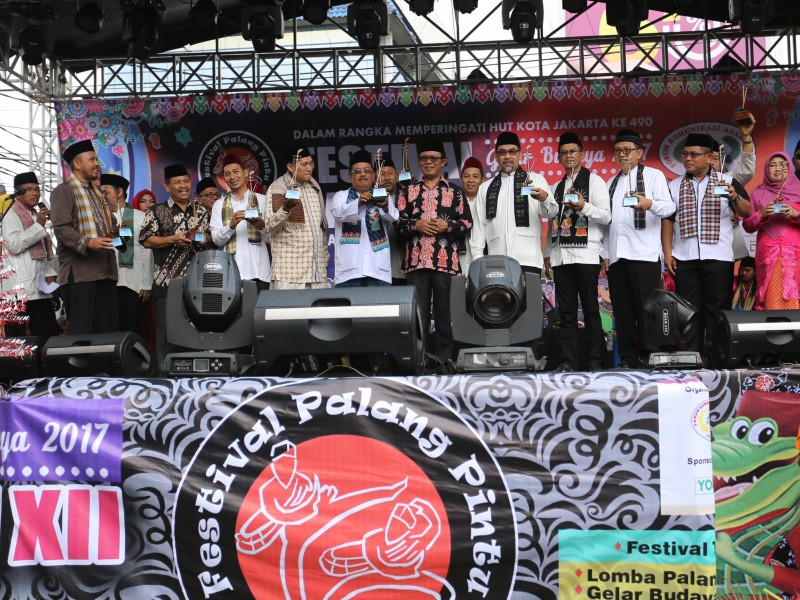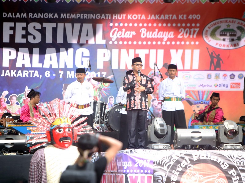 Wakil Wali Kota Jakarta Selatan, Irmansyah membuka Festival Palang Pintu Kemang 2017,di Jalan Raya Kemang, Mampang Prapatan, Jakarta Selatan, Sabtu (6/5). Terdapat 300 stand yang ada di Festival Palang Pintu Kemang. Berbagai jenis makanan dan minuman seperti dodol, kerak telor dan bir pletok. Suvenir khas Betawi juga terdapat dalam stand seperti ondel-ondel dan batik khas Betawi. Berbagai pertunjukan seni juga ditampilkan seperti tarian Betawi, palang pintu, lenong dan berbalas pantun. (Foto: Punto/beritajakarta.id)