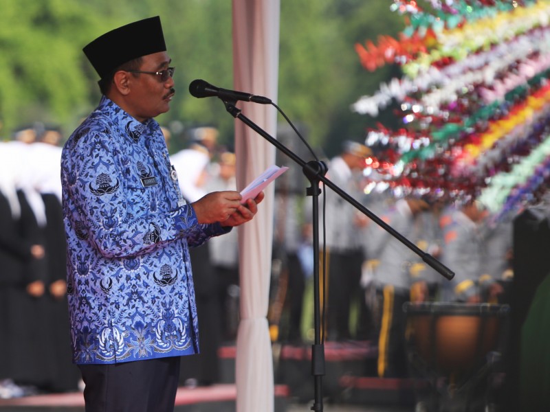 Pelaksana Tugas (Plt) Gubernur DKI Jakarta, Djarot Saiful Hidayat bertindak sebagai Inspektur Upacara pada peringatan Hari Kebangkitan Nasional ke-109 Tahun 2017, di lapangan eks IRTI Monas, Gambir, Jakarta Pusat, Sabtu (20/5). (Foto: Punto/beritjakarta.id)
