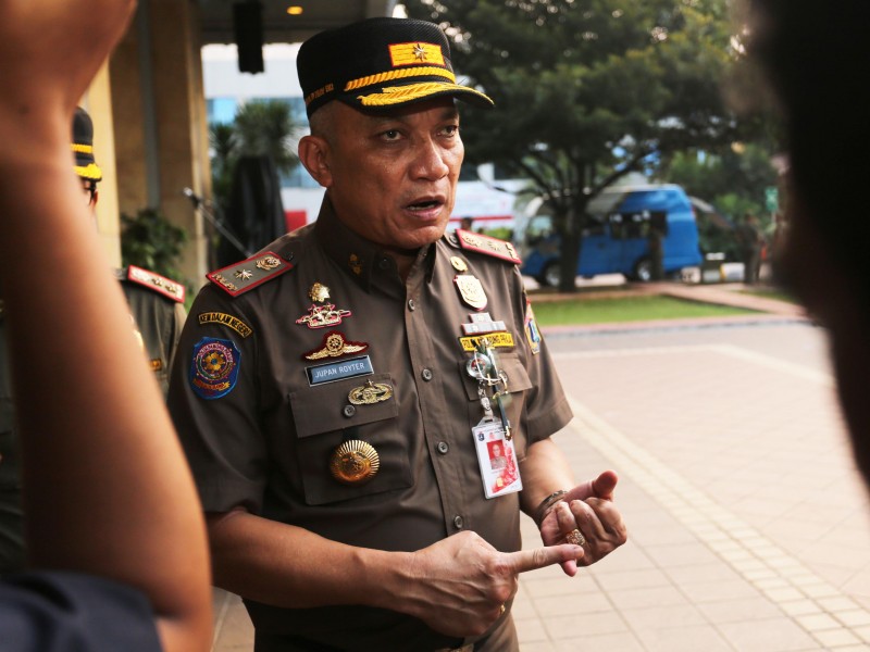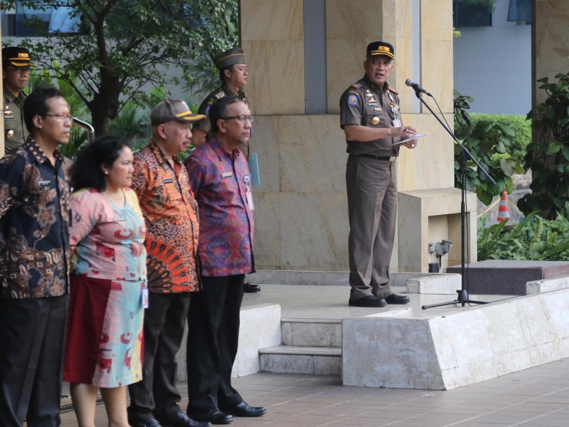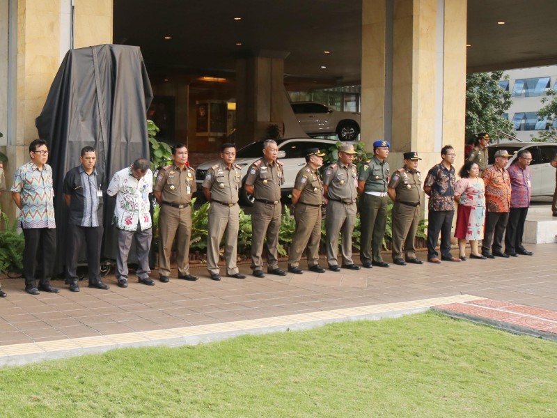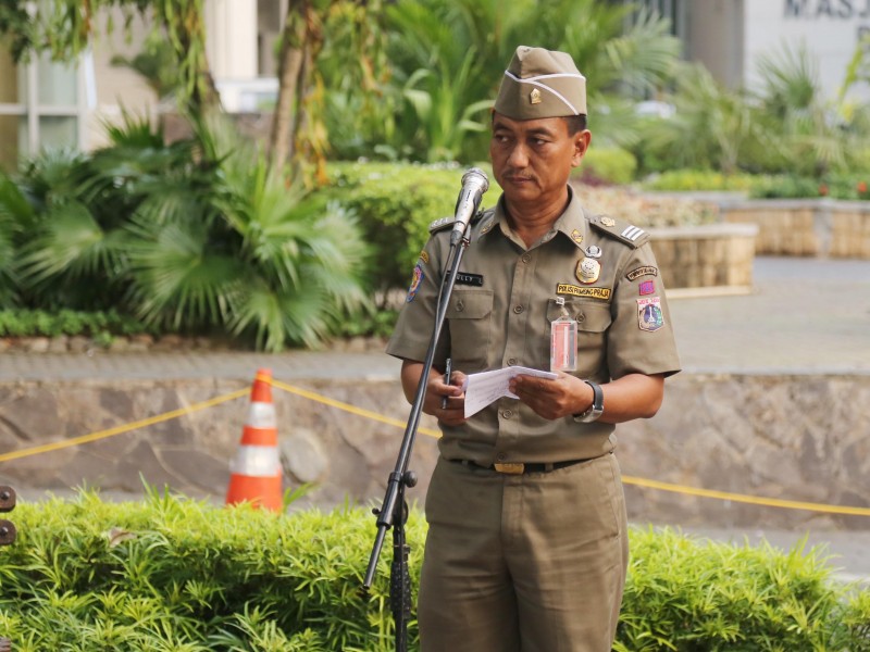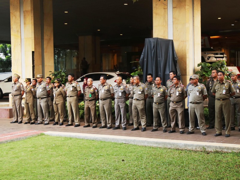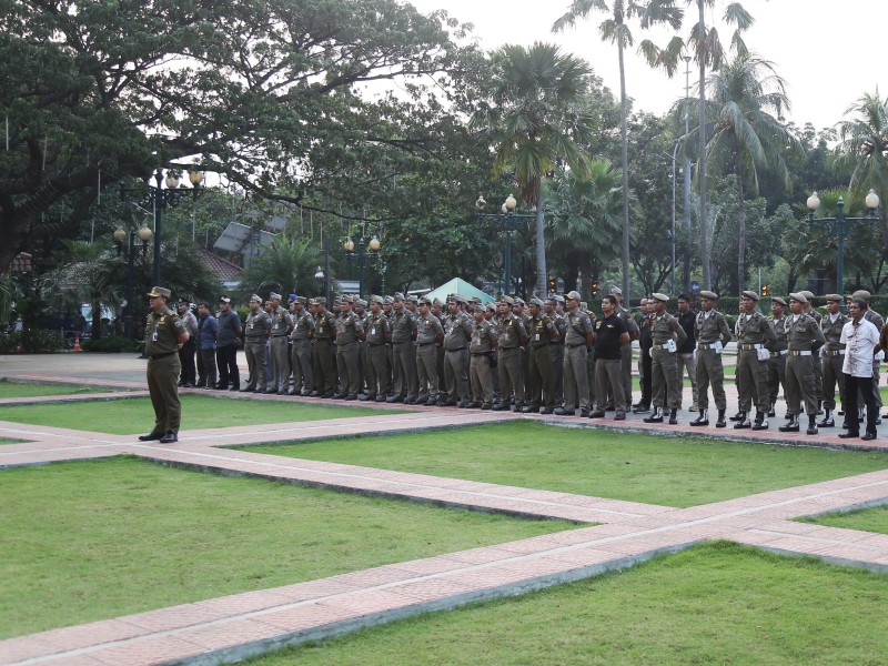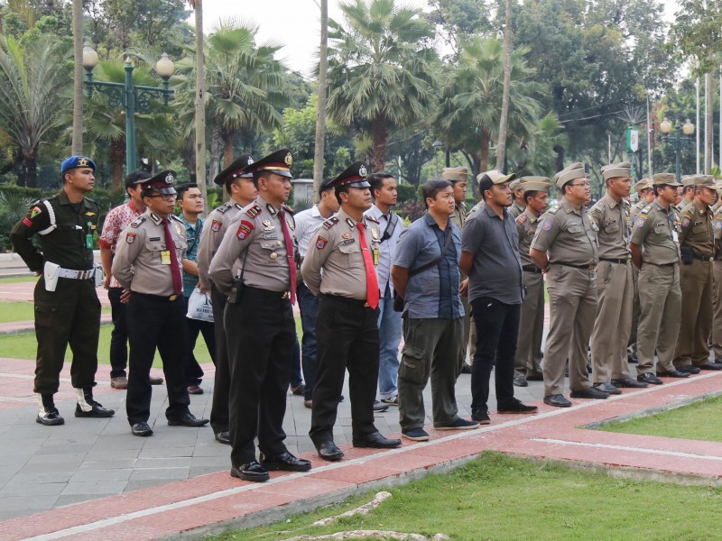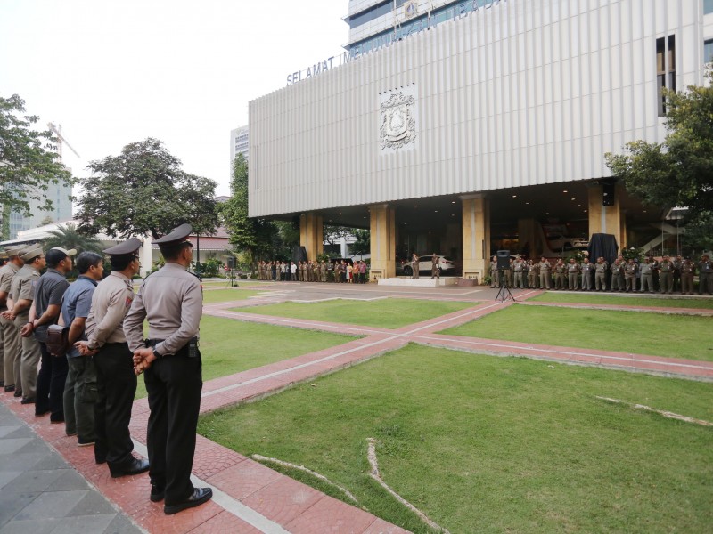 Tim terpadu pengawasan hiburan malam menggelar apel kesiagaan di halaman Balai Kota DKI Jakarta, Jumat (26/5). Apel sekaligus menandai dimulainya pengawasan hingga berakhirnya Ramadan pada 27 Juni nanti. (Foto: Punto/beritajakarta.id)