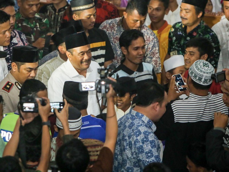 Pelaksana Tugas (Plt) Gubernur DKI Jakarta, Djarot Saiful Hidayat melaksanakan ibadah salat tarawih pertama Ramadan di Masjid KH Hasyim Asy`ari, Jl Raya Daan Mogot, Cengkareng, Jakarta Barat, Jumat (26/5) malam.(Foto: Punto/beritajakarta.id)