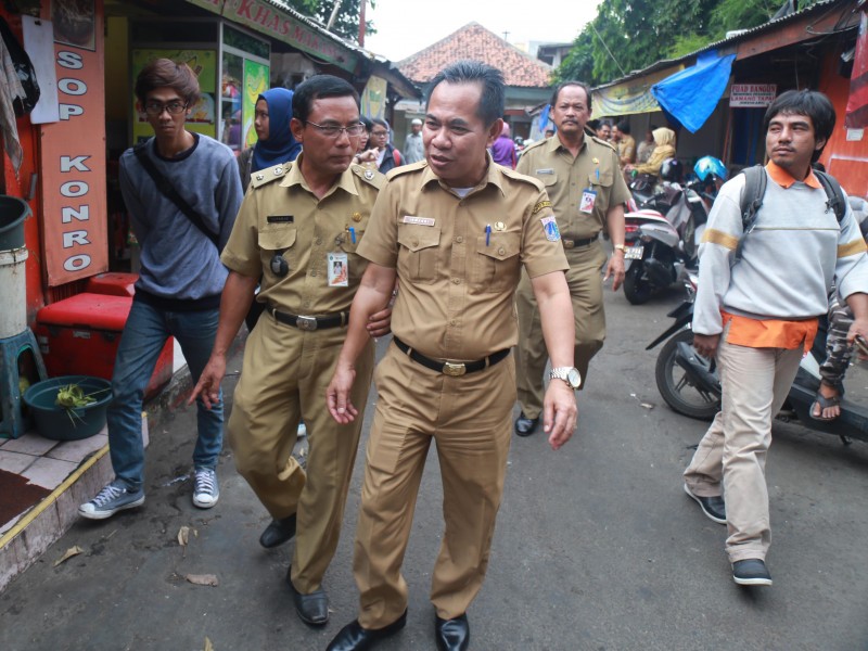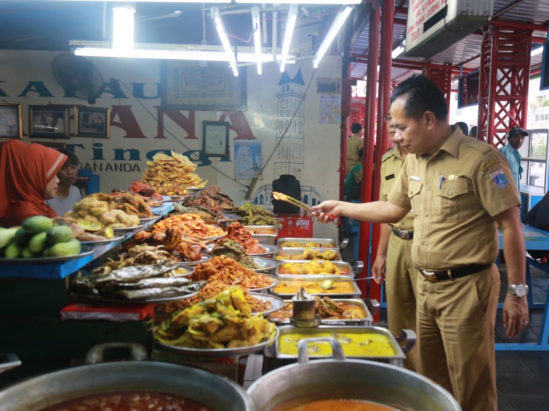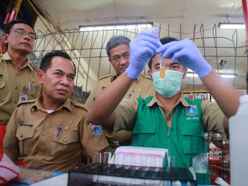 Dinas Koperasi, Usaha Kecil, Menengah dan Perdagangan (KUKMP) DKI Jakarta, melakukan pengecekan ke lokasi sementara (Loksem) JP 33 dan JP 34 di Jl Kramat Raya, Senen, Jakarta Pusat, Senin (5/6). Kepala Dinas KUKMP DKI Jakarta, Irwandi Yusuf mengatakan, pihaknya bersama Badan Pemeriksa Obat dan Makanan (BPOM) rutin melakukan pengawasan agar produk pangan tersebut bebas dari zat berbahaya se perti Rhodamin, Methanil, Formalin dan Metanil Yellow. (Foto: Reza/beritajakarta.id)