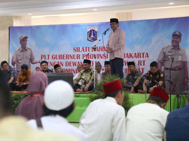 Pelaksana Tugas (Plt) Gubernur DKI Jakarta, Djarot Saiful Hidayat melakukan silaturahmi dengan Ketua RT/RW, LMK dan Dewan Kota se-Jakarta Barat, di ruang serba guna Masjid Raya Hasyim Asy`ari Daan Mogot, Jakarta Barat, Rabu (7/6).(Foto: Punto/beritajakarta.id)