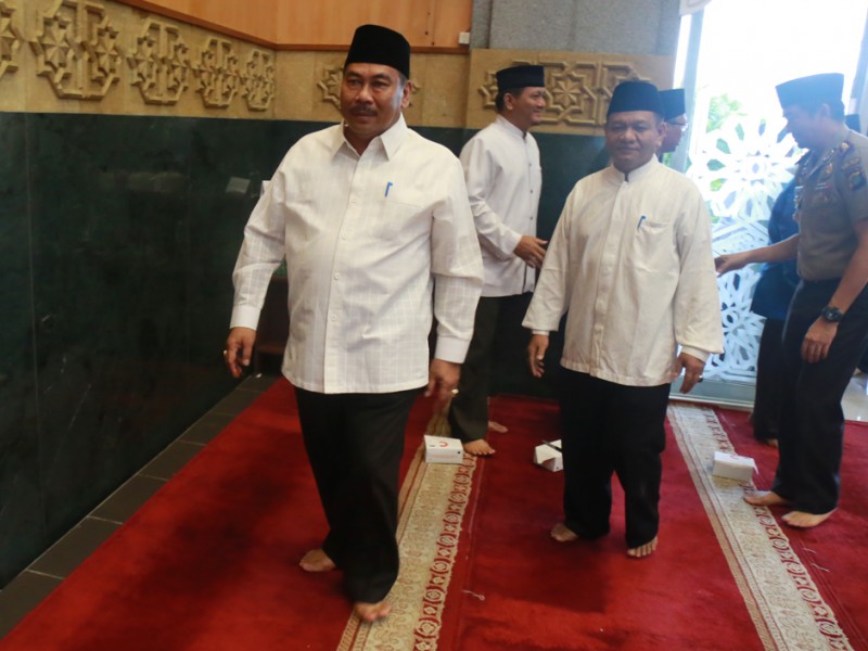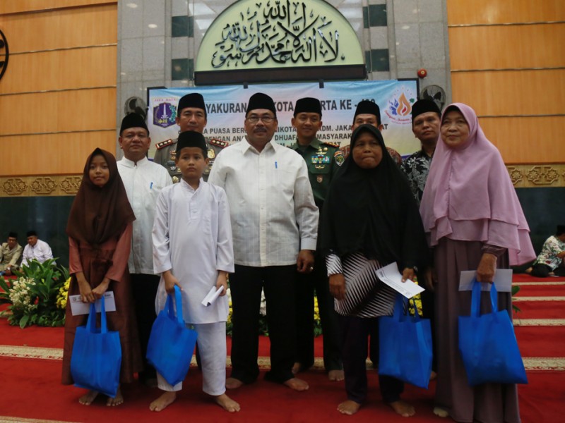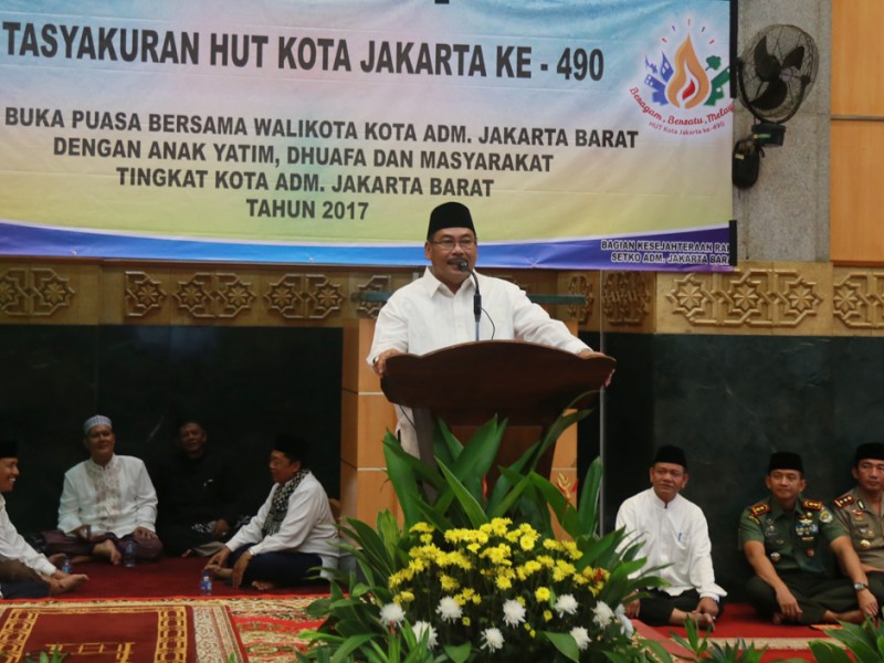 Wali Kota Jakarta Barat, Anas Efendi menggelar tasyakuran menyambut Hari Ulang Tahun (HUT) ke-490 Kota Jakarta sekaligus berbu ka puasa bersama anak yatim, dhuafa dan masyarakat di Masjid As Sahara Kompleks Kantor Wali Kota Jakarta Barat, Jumat (9/6). (Foto: Reza/beritajakarta.id)
