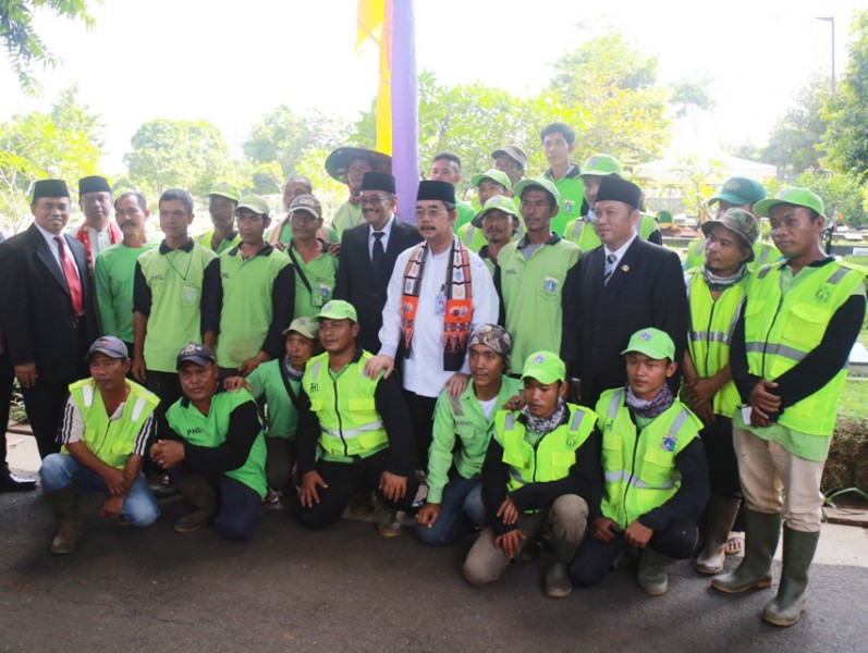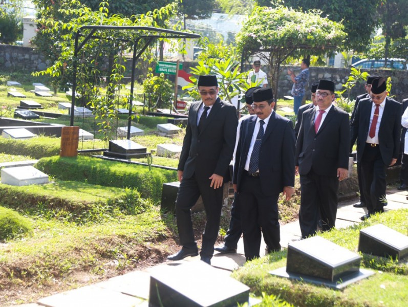 Gubernur DKI Jakarta, Djarot Saiful Hidayat beserta rombongan ziarah ke makam Mohammad Husni Thamrin dan Ismail Marzuki, di Tempat Pemakaman Umum (TPU) Karet Bivak, Jakarta Pusat, Jumat (16/6). (Foto: Reza/beritajakarta.id)