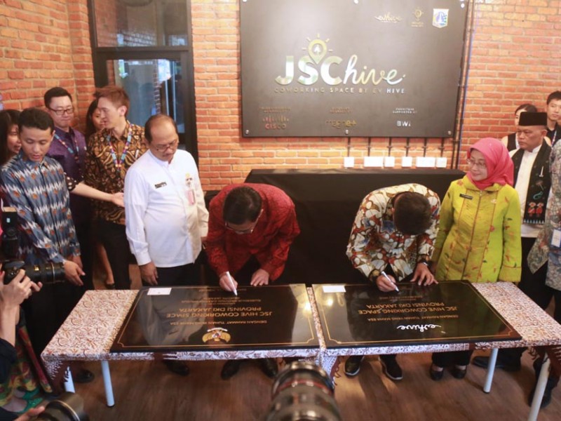 Gubernur DKI Jakarta, Djarot Saiful Hidayat meresmikan gedung Jakarta Smart City (JSC) Hive, di Jalan Prof Dr Satrio, Setiabudi, Jakarta Selatan, Kamis (22/6). Gedung ini merupakan hasil kerja sama Pemerintah Provinsi (Pemprov) DKI Jakarta dengan EV Hive. (Foto: Reza/beritajakarta.id)