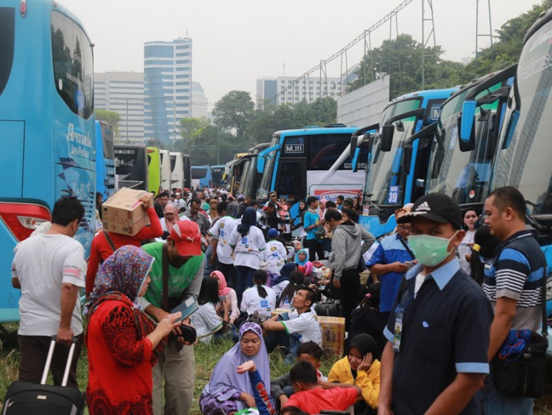 Sekretaris Daerah (Sekda) Provinsi DKI Jakarta, Saefullah melepas 5.015 pemudik dalam kegiatan mudik gratis, di kawasan Gelora Bung Karno, Senayan, Jakarta Pusat, Jumat (23/6). Saefullah mengapresiasi penyelenggaraan mudik gratis corporate social responsibility (CSR) dari salah satu perusahaan retail. (Foto: Reza/beritajakarta.id)