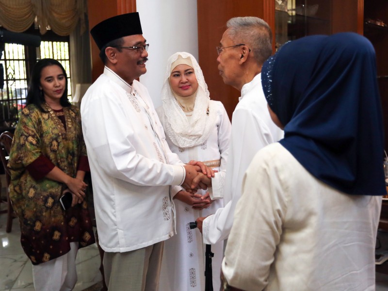 Gubernur DKI Jakarta Djarot Saiful Hidayat memanfaatkan momentumLebaran untuk bersilaturahmi ke kediaman mantan Gubernur DKI Jakarta,Soerjadi Soedirdja (1992-1997) di Komplek MPR 2, Cipete Selatan, Jakarta Selatan, Minggu (25/6). (Foto: Punto/beritajakarta.id)