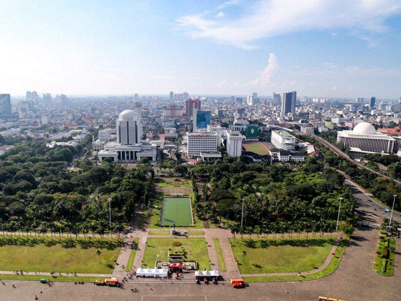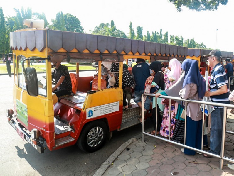 Ribuan warga mengisi libur ketiga Lebaran dengan mengunjungi Monumen Nasional (Monas), Jakarta Pusat, Rabu (28/6). (Foto: Reza/beritajakarta.id)
