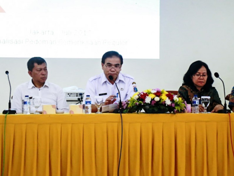 Kepala Inspektorat DKI Jakarta, Zainal membuka finalisasi Pemutakhiran Program Pemeriksaan Reguler (Popreg) 2017, di SMK 27, Jalan Dr. Sutomo, Kecamatan Sawah Besar, Jakarta Pusat, Rabu (5/7). Penyusunan draf Popreg nanti diharapkan dapat memberikan kesamaan visi, misi, dan persepsi dalam melaksanaan tugas . (Foto: Reza/beritajakarta.id)