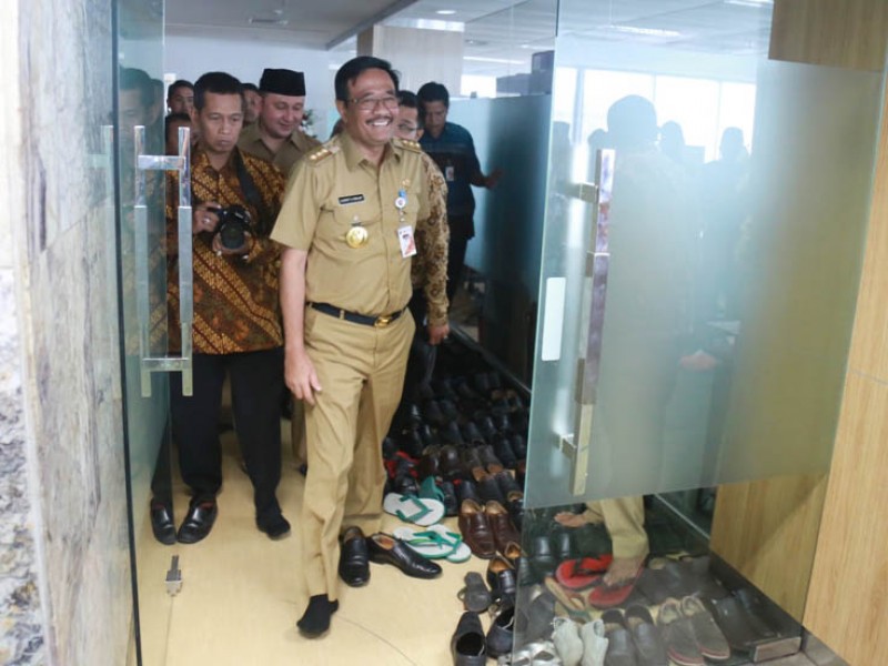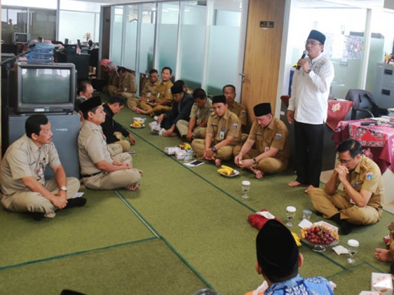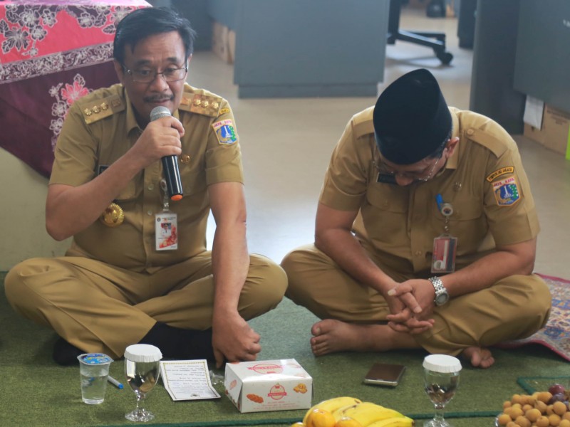 Gubernur DKI Jakarta, Djarot Saiful Hidayat menghadiri halal bihalal dengan pengurus lembaga keagamaan yang digelar Biro Pendidikan Mental dan Spiritual (Dikmental) di lantai 19, Blok G Balai Kota DKI Jakarta, Selasa (11/7). Dalam kesempatan ini, Djarot mengajak tokoh agama untuk bersama-sama menjaga kedamaian dan persatuan . (Foto: Reza/beritajakarta.id)