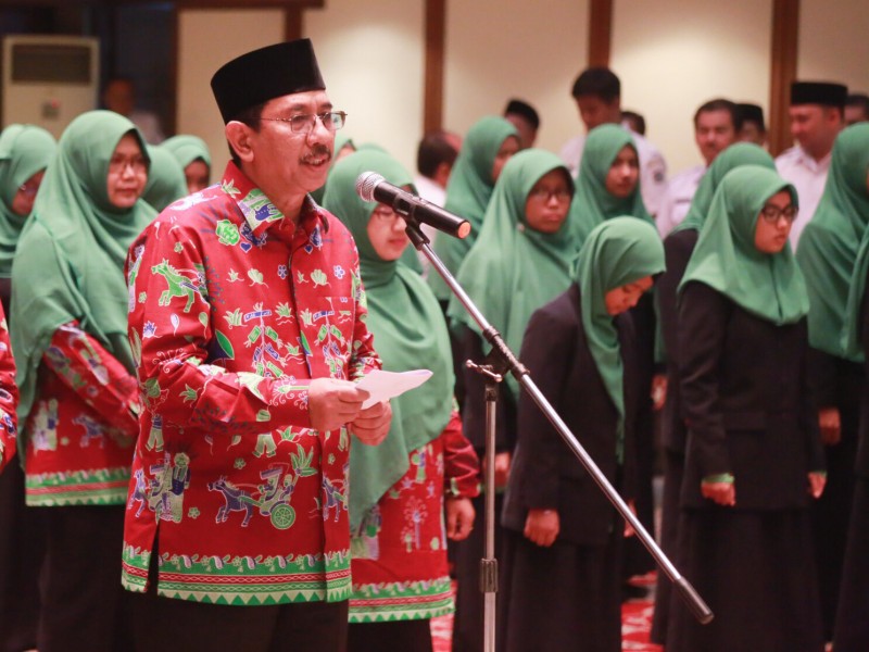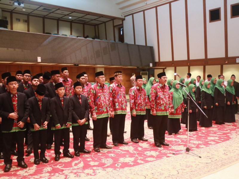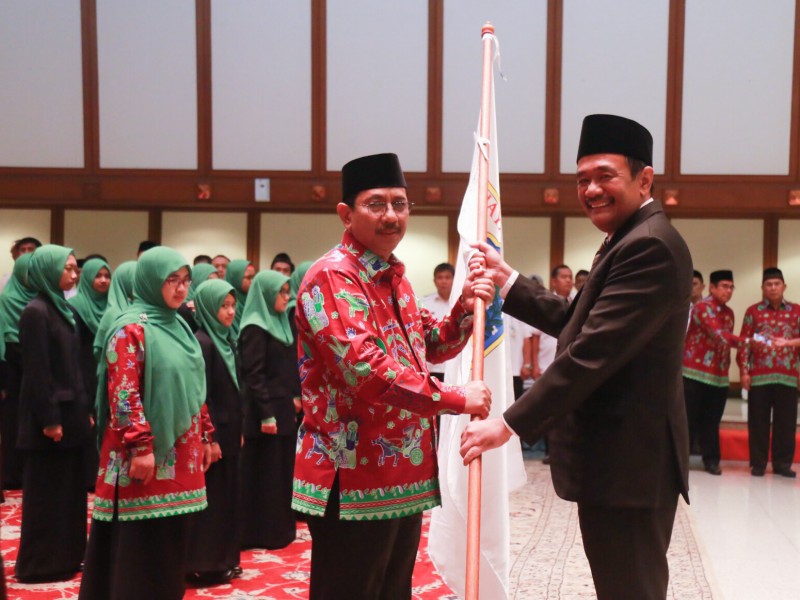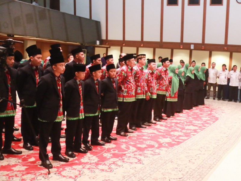 Gubernur DKI Jakarta, Djarot Saiful Hidayat melepas 30 Kafilah Provinsi DKI Jakarta pada Seleksi Tilawatil Quran (STQ) Nasional ke XXIV tahun 2017, di Balai Kota DKI Jakarta, Rabu (12/7). STQ Nasional akan digelar 15-21 Juli di Tarakan, Kalimantan Utara. (Foto: Reza/beritajakarta.id)