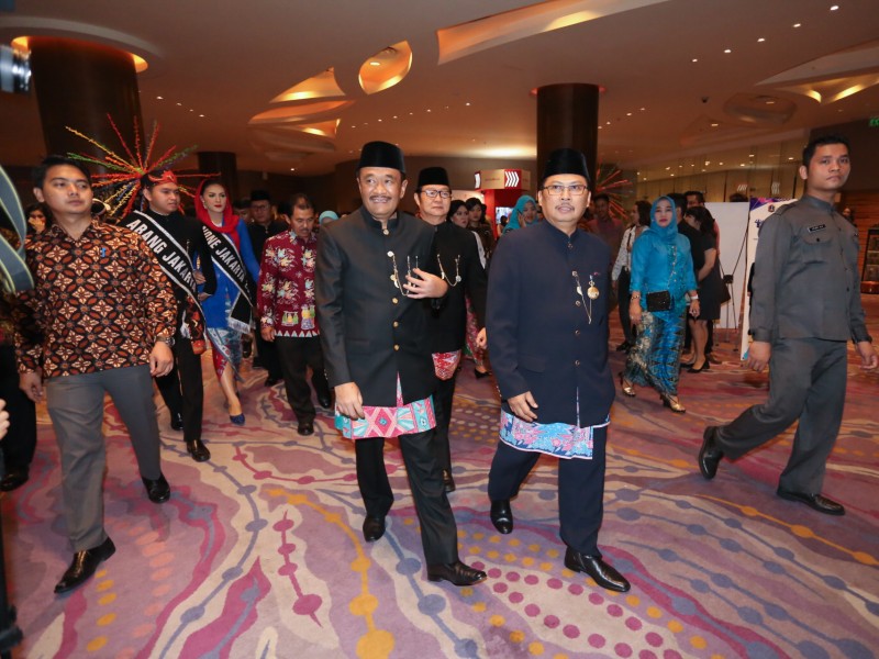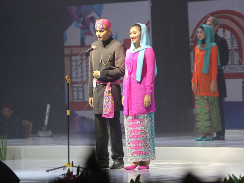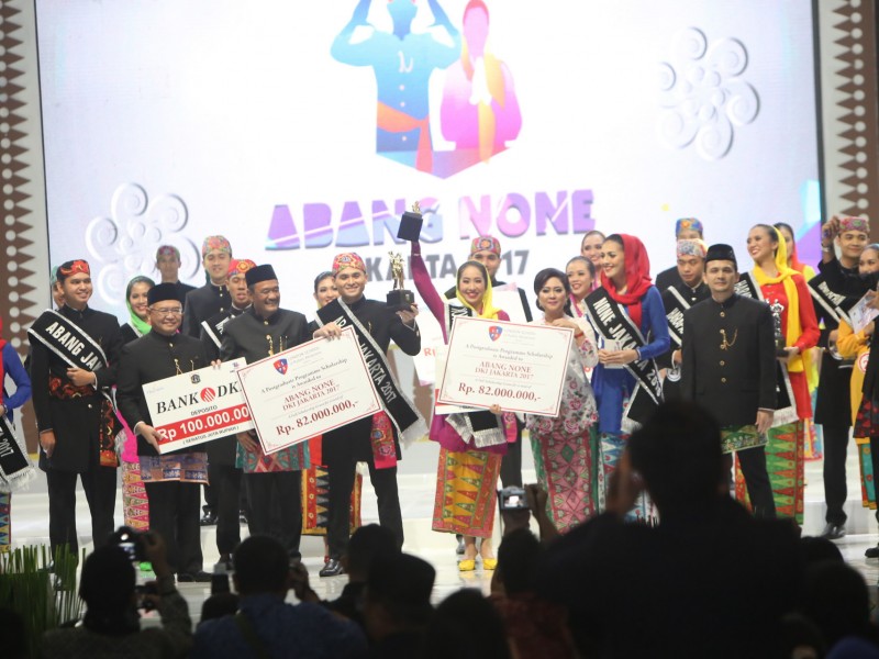 Ade Ghanda Kurnia Tandra dan Karina Syahna berhasil menyisihkan 34 peserta lain dalam malam final Abang None Jakarta 2017 yang digelar di Grand Ballroom Hotel Pullman Grogol Petamburan, Jakarta Barat, Jumat (14/7) malam. Selain mendapat hadiah Rp 12 juta dari Dinas Pariwisata dan Kebudayaan (Disparbud) DKI Jakarta, abang perwakilan dari Jakarta Utara serta none perwakilan dari Jakarta Selatan tersebut, juga mendapat hadiah uang tunai masing-masing sebesar Rp 100 juta dari Bank DKI. (Foto: Punto/beritajakarta.id)