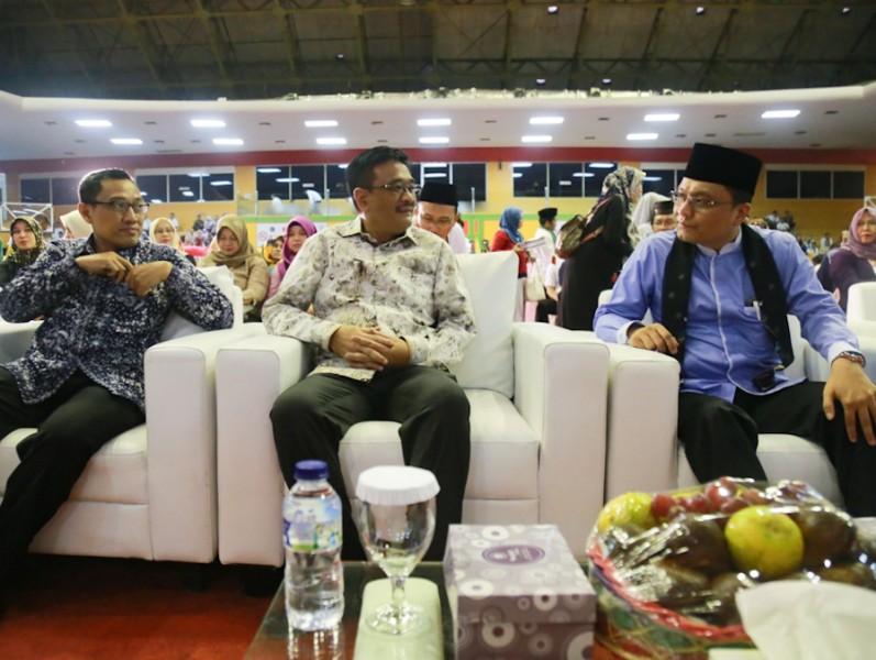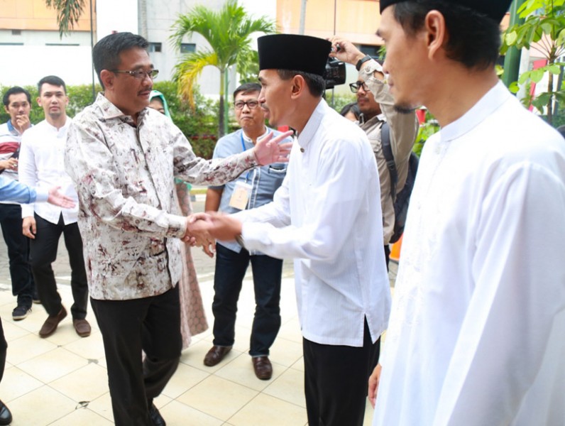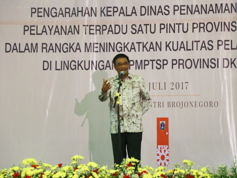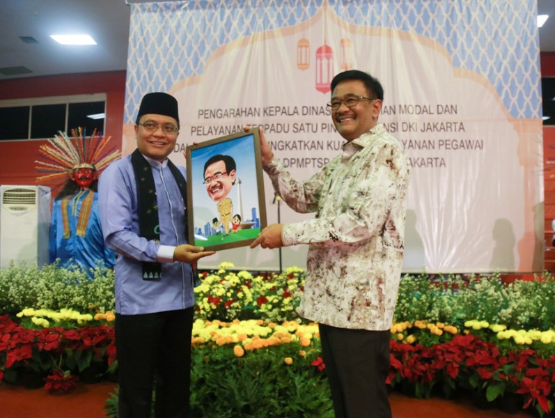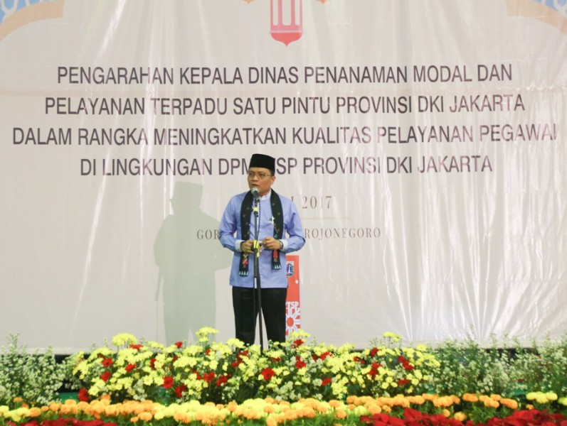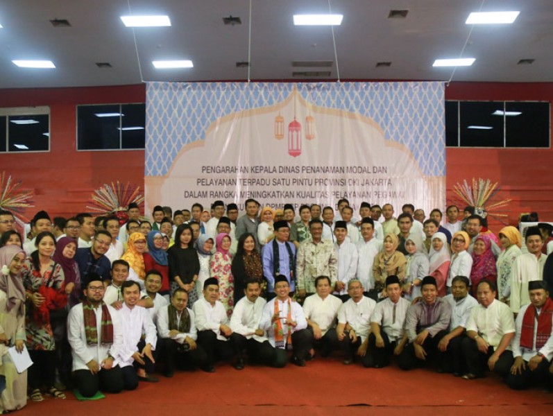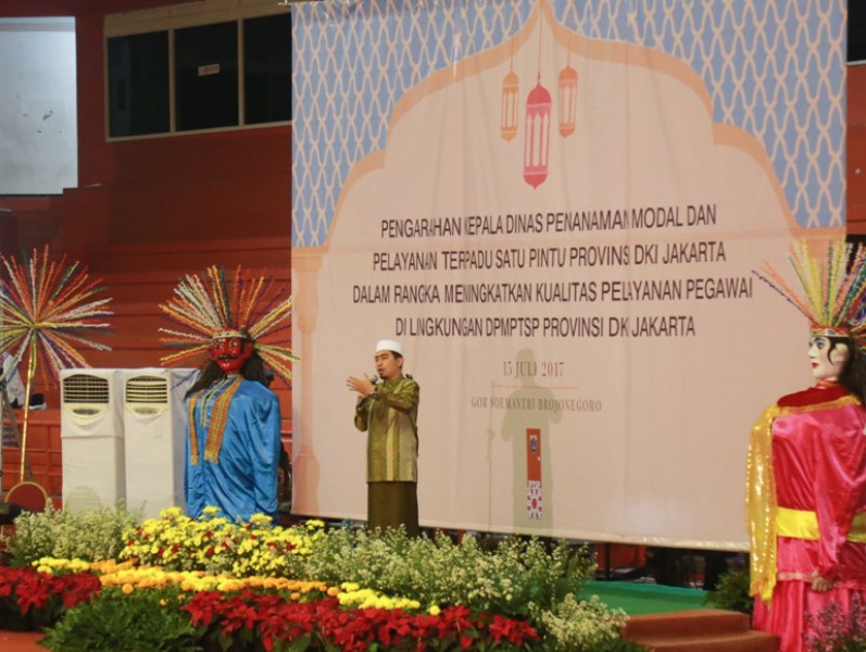 Gubernur DKI Jakarta, Djarot Saiful Hidayat menghadiri acara Halal Bihalal Dinas Penanaman Modal dan Pelayanan Terpadu Satu Pintu (DPM dan PTSP) DKI Jakarta, di GOR Soemantri Bodjonegero, Jakarta Selatan, Sabtu (15/7). Dalam sambutannya Djarot mengapresiasi gebrakan program pelayanan yang dilakukan PTSP. (Foto: Reza/beritajakarta.id)