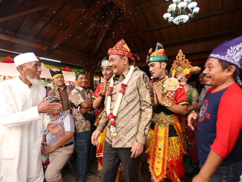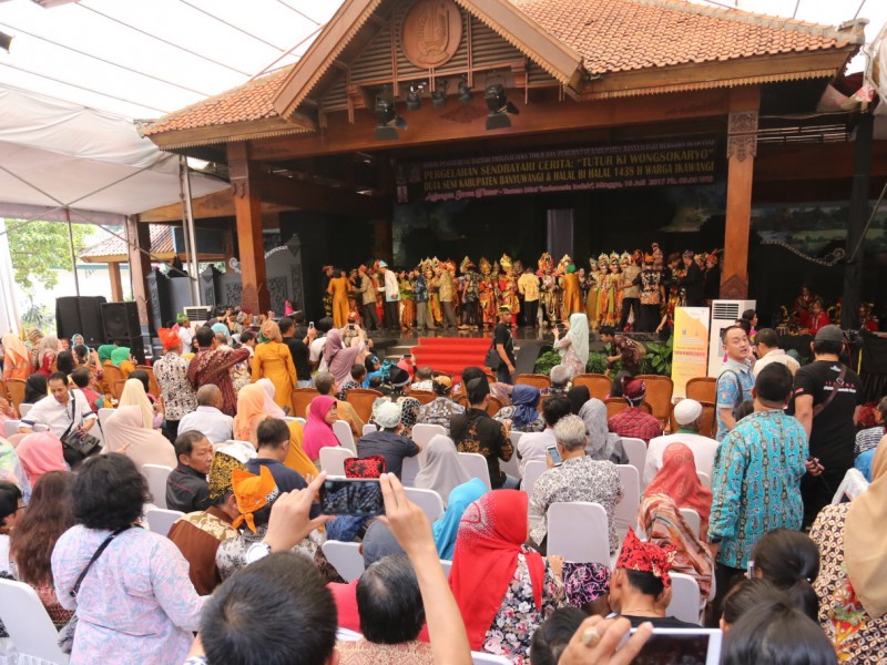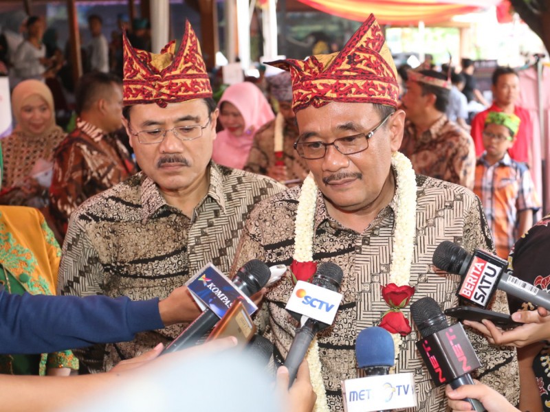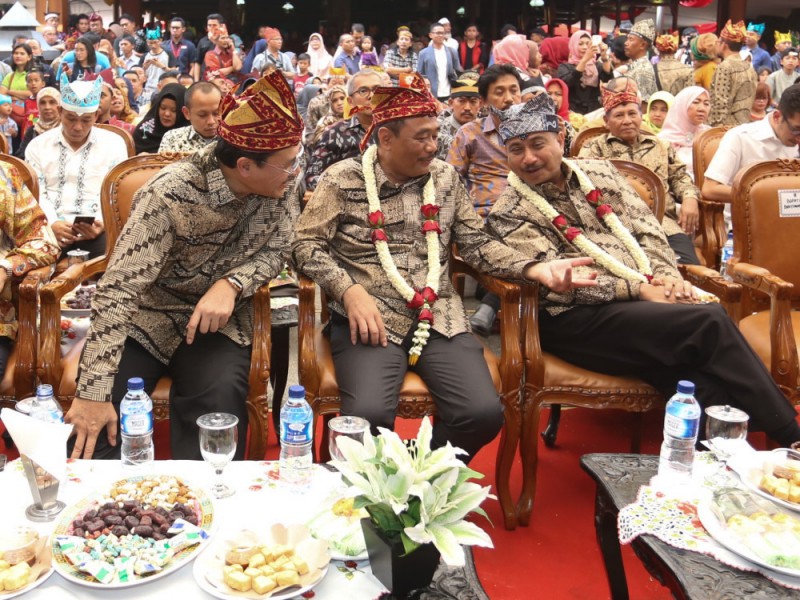 Gubernur DKI Jakarta, Djarot Saiful Hidayat menghadiri halal bihalal dan gelar seni budaya Banyuwangi di Anjungan Jawa Timur, TMII, Jakarta Timur, Minggu (16/7). Dalam acara turut hadir Menteri Pariwisata, Arief Yahya; Bupati Banyuwangi Abdullah Azwar Anas; serta Ketua Umum Ikawangi yang juga menjabat Asisten Pemerintahan Sekda DKI Jakarta, Bambang Sugiyono. (Foto: Punto/beritajakarta.id)