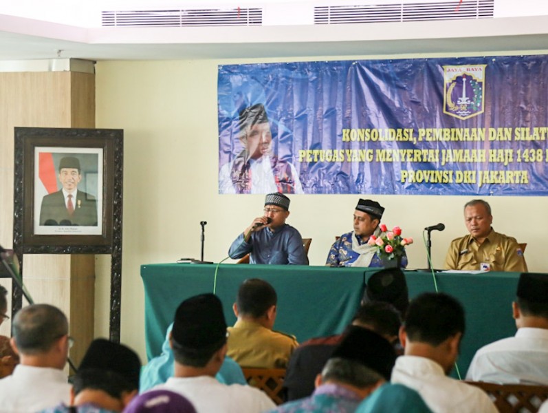 Biro Pendidikan Mental dan Spiritual (Dikmental) DKI Jakarta menggelar acara Konsolidasi, Pembinaan dan Silahturahmi petugas pendamping haji di Balai Kota DKI Jakarta, Senin (17/7). Pemerintah Provinsi (Pemprov) DKI Jakarta akan berangkatkan 50 orang petugas pendamping jamaah haji di DKI Jakarta. Nantinya petugas tersebut akan melayani sekitar 7891 calon jamaah haji di DKI Jakarta. (Foto: Reza/beritajakarta.id)
