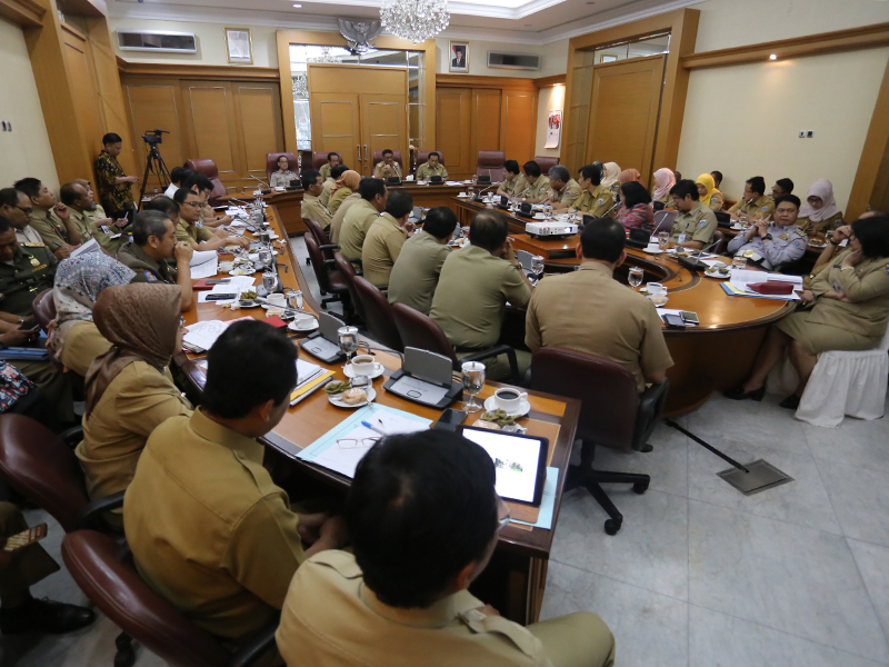 Gubernur DKI Jakarta, Djarot Saiful Hidayat memimpin rapat rutin bersama jajaran Satuan Kerja Perangkat Daerah (SKPD) di Balai Kota DKI Jakarta, Senin (17/7). Rapat Pimpinan (Rapim) kali membahas rencana Pemprov DKI dalam membebaskan Pajak Bumi dan Bangunan (PBB) cagar budaya tipe A. (Foto: Punto/beritajakarta.id)