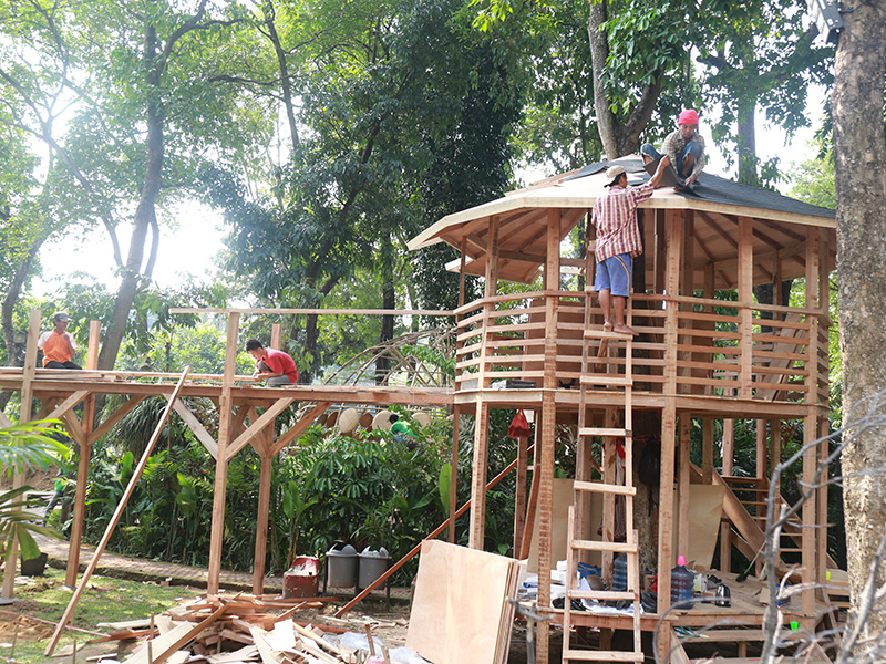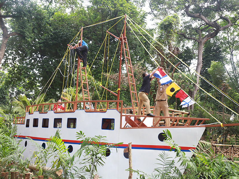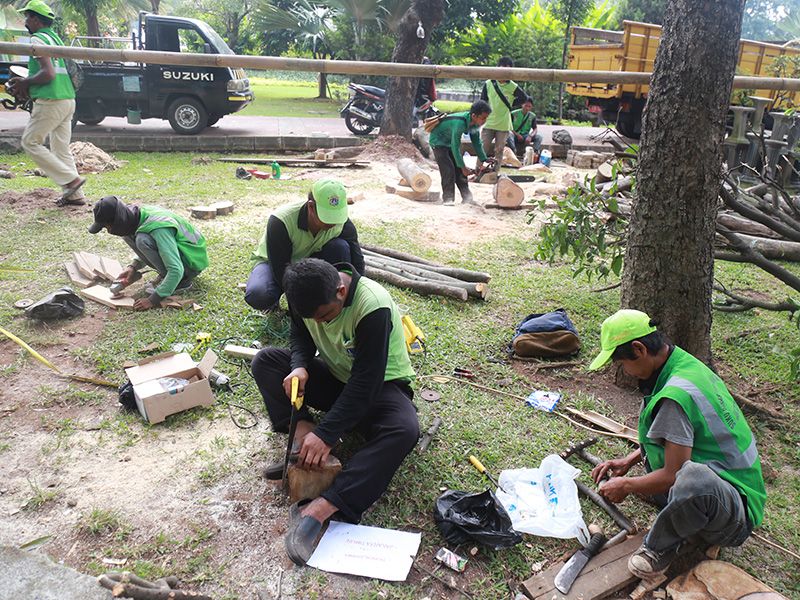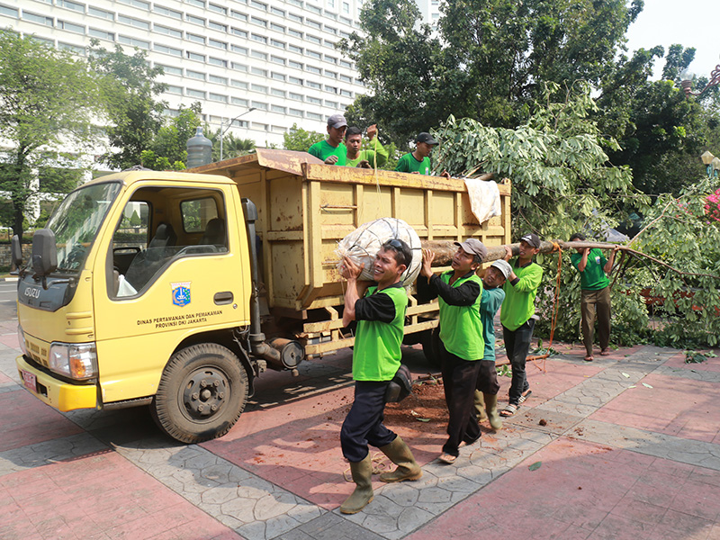 Dinas Kehutanan DKI Jakarta melakukan persiapan arena Pameran Flona 2017 di Taman Lapangan Banteng, Jakarta Pusat, Senin (17/7). Pameran Flona akan dibuka pada 21 Juli mendatang. (Foto: Reza/beritajakarta.id)