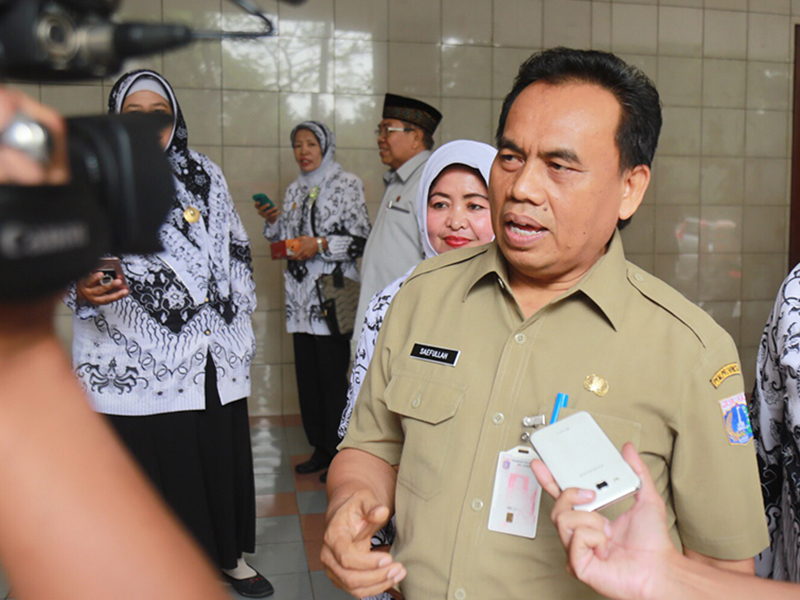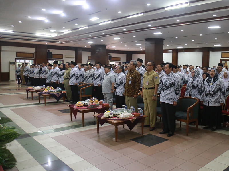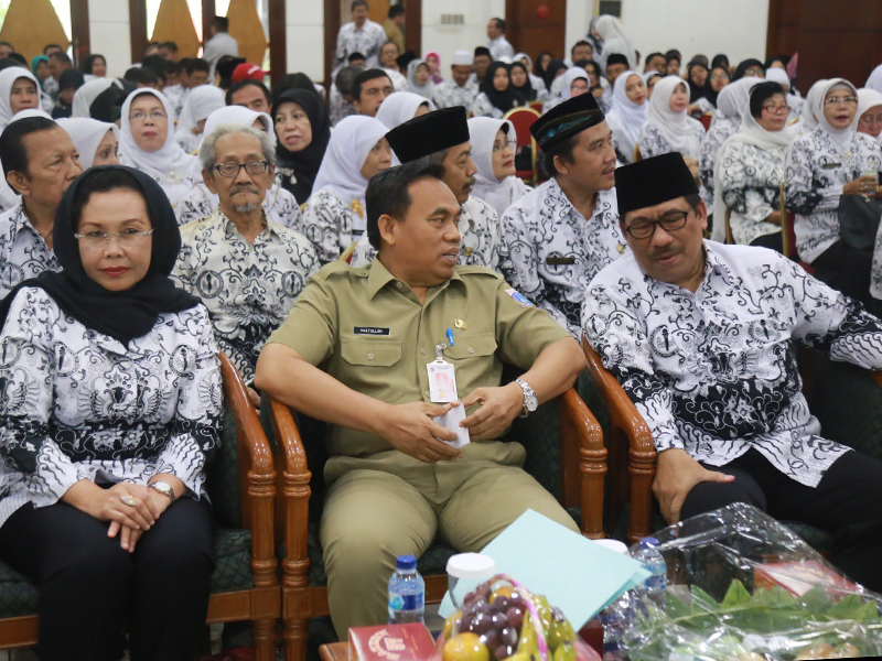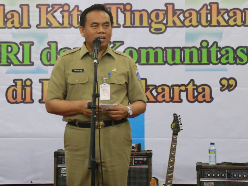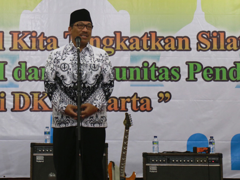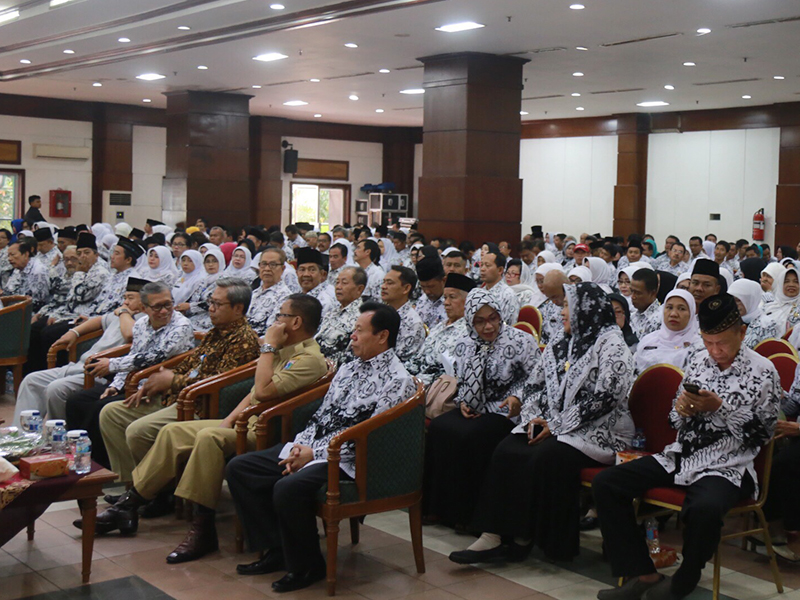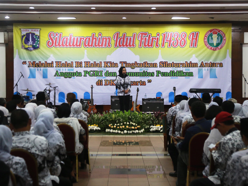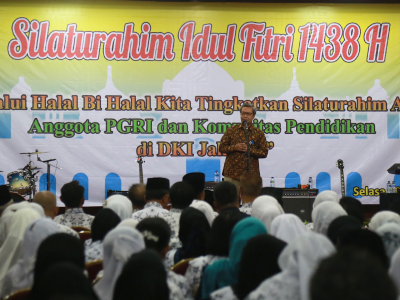 Sekretaris Daerah (sekda) Provinsi DKI Jakarta, Saefullah menghadiri halal bihalal Dinas Pendidikan DKI Jakarta, PGRI, dan Komunitas Pendidikan di Gedung Nyi Ageng Serang, Jl HR Rasuna Said, Setiabudi, Jakarta Selatan, Selasa (18/7). Dalam sambutanya, Saefullah meminta guru tidak pernah lelah menanamkan nilai integritas dan kejujuran kepada anak didiknya. Sebab, masa depan bangsa sedikit banyak menjadi tanggung jawab guru. (Foto: Reza/beritajakarta.id)