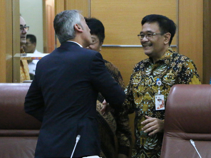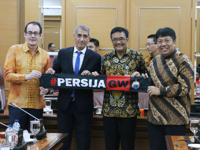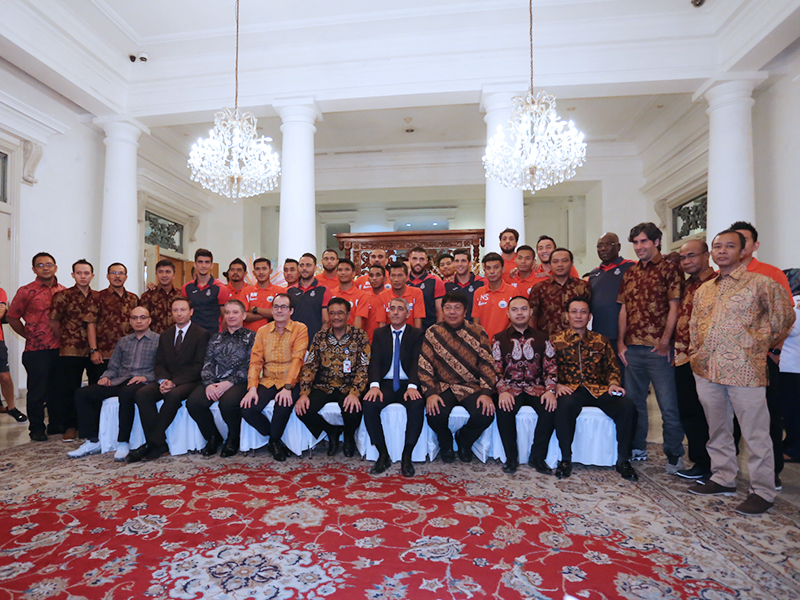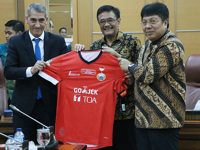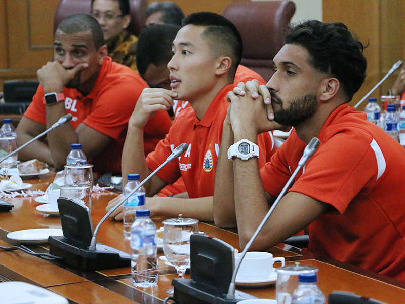 Gubernur DKI Jakarta, Djarot Saiful Hidayat menerima tim sepak bola RCD Espanyol di Balai Kota DKI Jakarta, Rabu (19/7). Kedatangan tim sepak bola dalam rangka pertandingan persahabatan melawan Persija. Djarot menjelaskan pertandingan persahabatan berguna untuk mendorong pemain-pemain muda di Indonesia agar mampu tampil hingga di kelas Asia. Dalam kesempatan itu, tim Persija juga turut hadir. (Foto: Punto/beritajakarta.id)