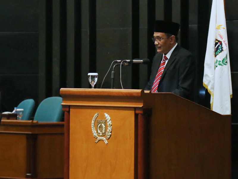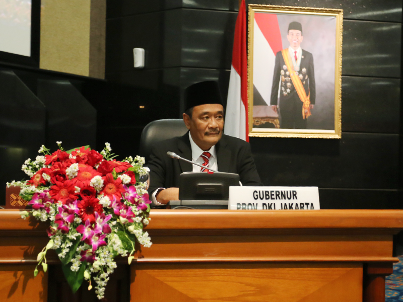 Gubernur DKI Jakarta Djarot Saiful Hidayat menyampaikan tanggapannya pada rapat paripurna yang digelar di Gedung DPRD DKI Jakarta, Rabu (19/7). Tanggapan tersebut ditujukan kepada fraksi-fraksi di DPRD DKI Jakarta atas Laporan Pertanggun Jawaban (LPJ) penggunaan APBD DKI tahun 2016. (Foto: Punto/beritajakarta.id)
