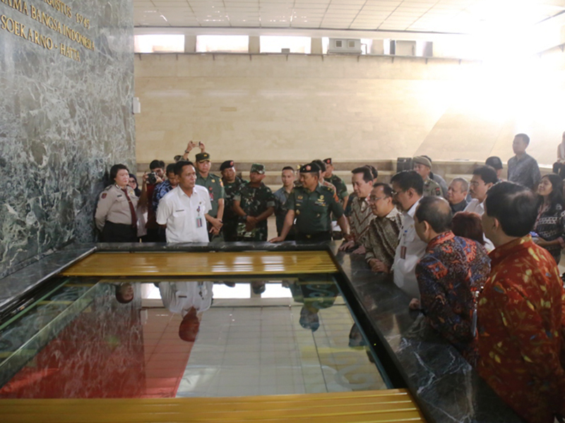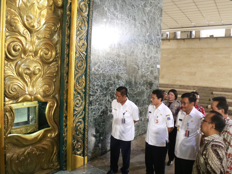 Gubernur DKI Jakarta, Djarot Saiful Hidayat, bersama Menteri Sekretaris Negara (Mensesneg) RI, Pratikno meninjau langsung penyimpanan bendera pusaka, Sang Saka Merah Putih dan teks Proklamasi di Ruang Kemerdekaan dan Air mancur Pesona Monas, Gambir, Ja karta Pusat, Selasa (26/7). (Foto: Reza/beritajakarta.id)