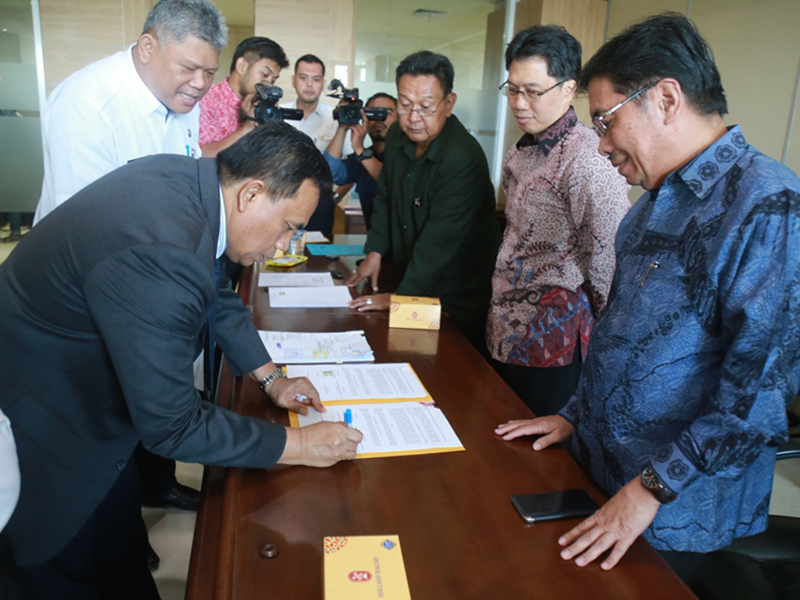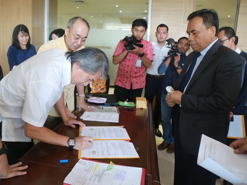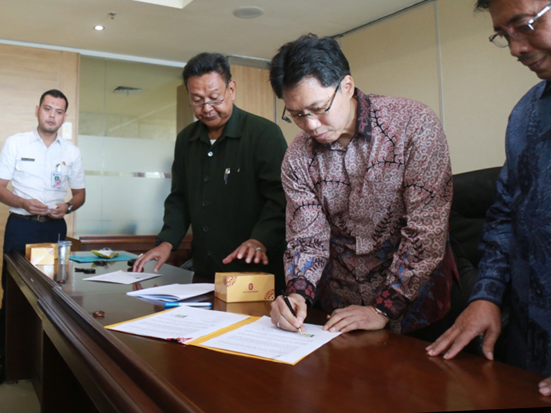 Sekretaris Daerah (Sekda) DKI Jakarta, Saefullah menandatangani kewajiban Surat Izin Penunjukan Penggunaan Tanah (SIPPT) serta perjanjian kenaikan Koefisien Lantai Bangunan (KLB) pengembang, di Balai Kota DKI Jakarta, Rabu (26/7). (Foto: Reza/beritajakarta.id)
