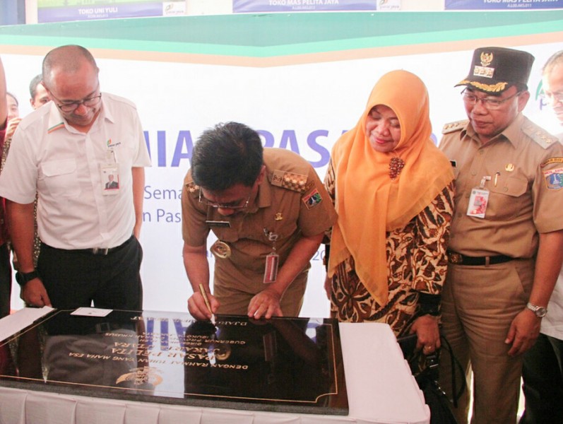 Gubernur DKI Jakarta, Djarot Saiful Hidayat meresmikan Pasar Pelita di Jl Raya Sungai Bambu Kel. Sungai Bambu Kec. Tanjung Priok, Jakarta Utara, Selasa (29/8). Pasar Pelita dibangun di atas lahan seluas 3.425 meter persegi, dengan luas bangunan 2.592 meter persegi. Pasar ini mampu menampung 382 tempat usaha dari 255 pedagang. (Foto: Reza/beritajakarta.id)