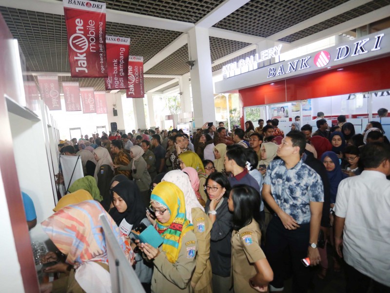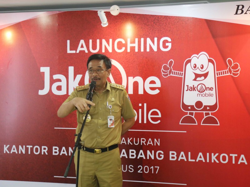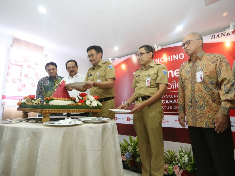 Bank DKI meluncurkan aplikasi layanan keuangan JakOne Mobile di Balai Kota DKI Jakarta, Selasa (29/8). JakOne Mobile merupakan aplikasi layanan keuangan yang terdiri dari mobile banking dan mobile wallet. Dalam acara ini turut dilakukan peresmian kantor cabang utama Bank DKI Balai Kota. (Foto: Punto/beritajakarta.id)