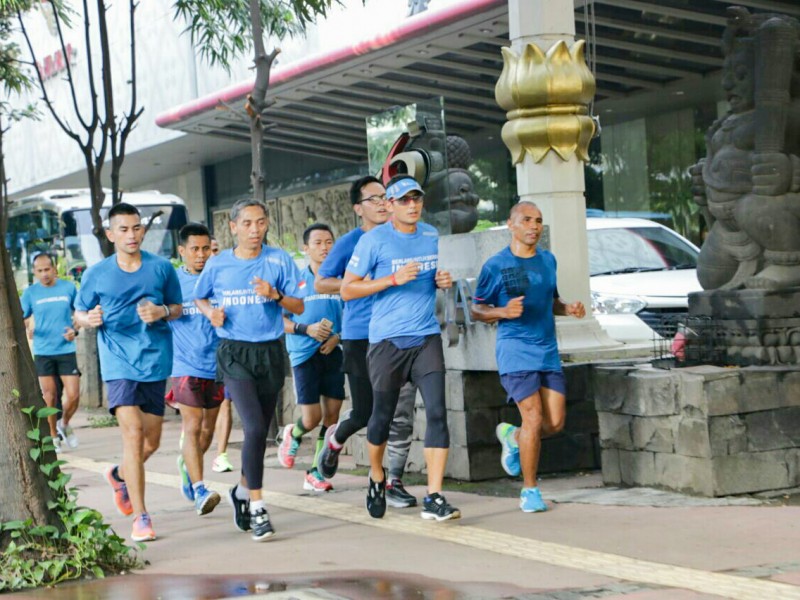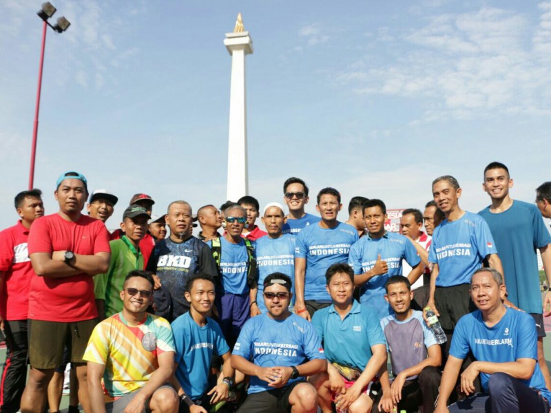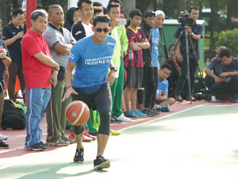 Wakil Gubernur (Wagub) DKI Jakarta, Sandiaga Uno mengawali aktivitas pagi ini dengan berlari dari kediamanya menuju Monumen Nasional (Monas). Kemudian, dia melanjutkan dengan senam bersama warga dan main basket, Jumat (20/10). Bagi Sandi, berlari dari kediamannya menuju ke Balai Kota sekaligus memantau kondisi di lapangan salah satunya kondisi infrastruktur di lapangan. (Foto: Reza/beritajakarta.id)