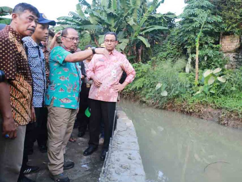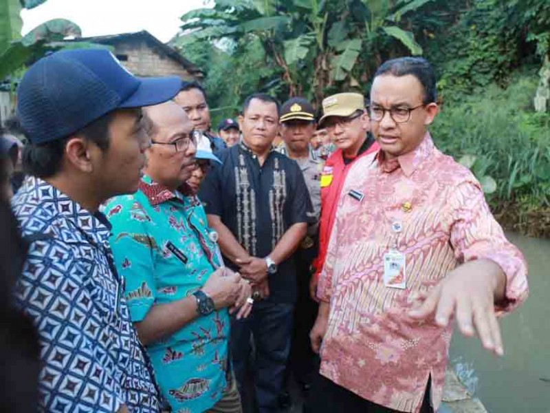 Anies Tinjau Tanggul Jebol di Jati Padang