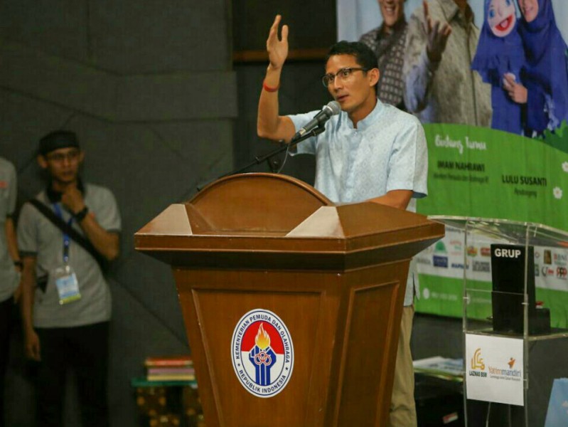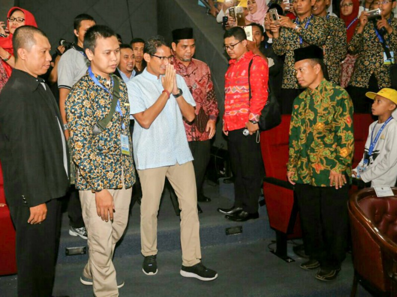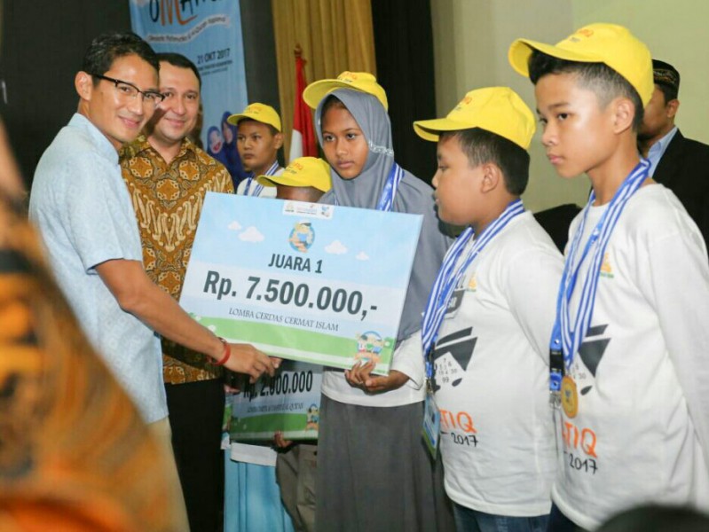 Wakil Gubernur (Wagub) DKI Jakarta, Sandiaga Uno mengapresiasi terselenggaranya kegiatan Olimpiade Matematika dan Quran Nasional (OMATIQ) di Kantor Kementerian Pemuda dan Olahraga (Kemenpora), Jakarta Pusat, Sabtu (21/10). Kegiatan OMATIQ diikuti 170 peserta dari berbagai provinsi. (Foto: Punto/beritajakarta.id)