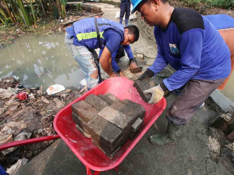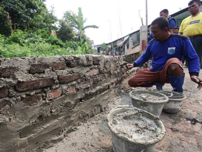 Dinas Tata Air Perbaiki Tanggul di Jati Padang