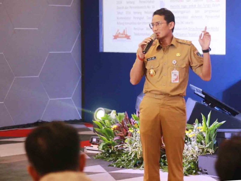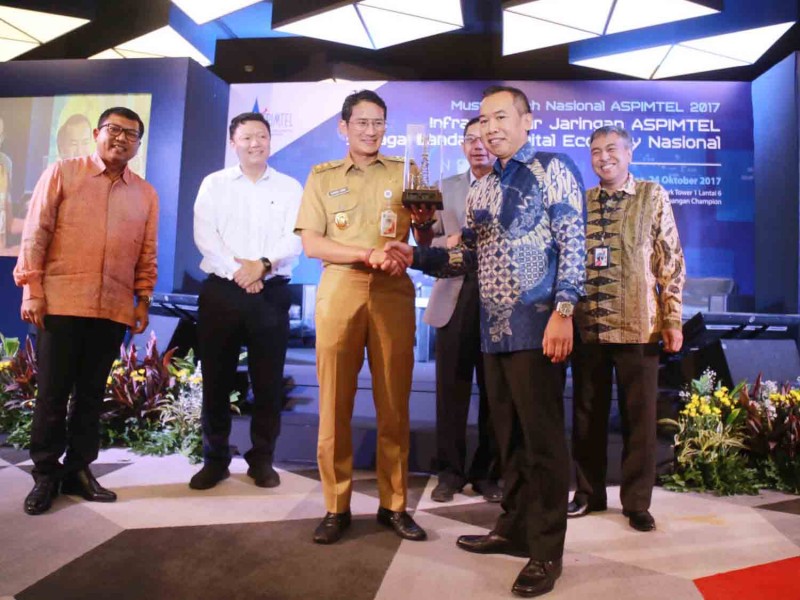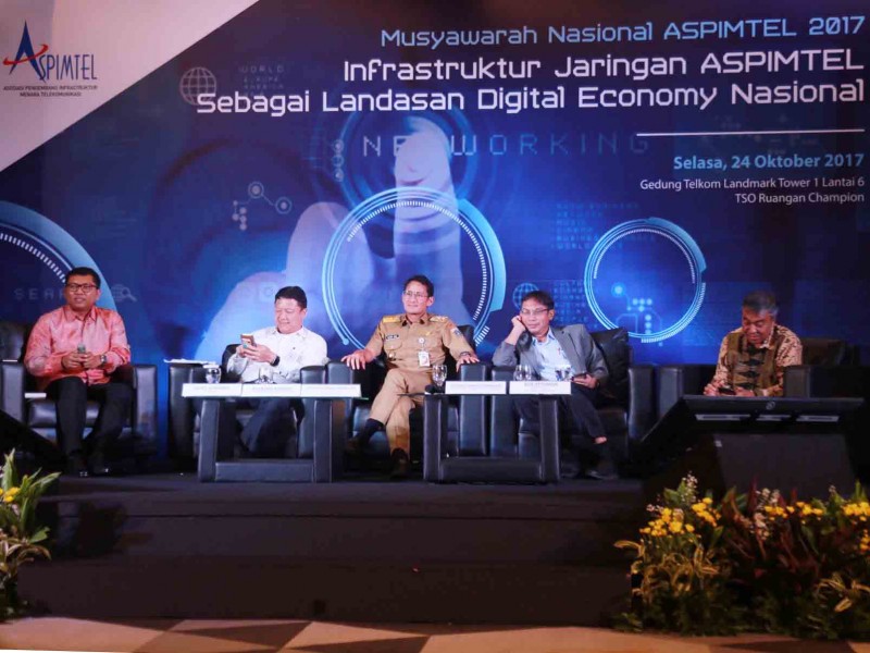 Wakil Gubernur (Wagub) DKI Jakarta, Sandiaga Uno bertindak sebagai pembicara dalam Seminar Asosiasi Pengembang Infrastruktur Menara Telekomunikasi (ASPIMTEL), di Gedung Telkom Landmark Tower 1, Jl Gatot Subroto, Jakarta Selatan, Selasa (24/10). (Foto: Reza/beritajakarta.id)