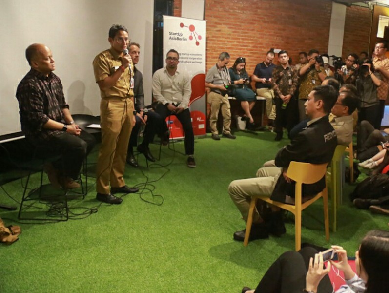 Wakil Gubernur (Wagub) DKI Jakarta, Sandiaga Uno bertindak sebagai pembicara dalam acara Startup Asia Berlin di Jakarta Smart City (JSC) Hive,Jl Prof Dr Satrio, Setiabudi, Jakarta Selatan, Selasa (24/10). Seminar membahas tentang membuat sebuah ekosistem startup yang mendunia. (Foto: Reza/beritajakarta.id)