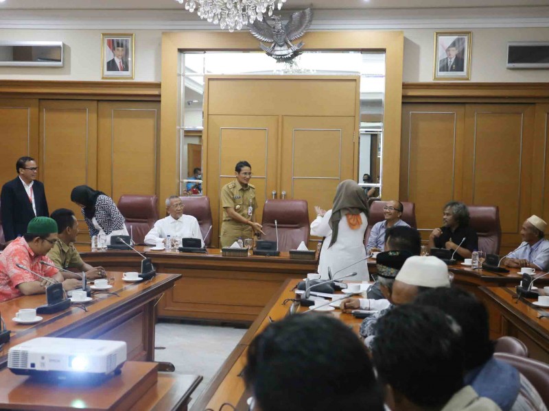 Wakil Gubernur (Wagub) DKI Jakarta, Sandiaga Uno menghadiri Rapat Pleno Festival Jakarta Berbakat (FJB) bersama warga Kampung Bayam di Balai Kota DKI Jakarta, Selasa (24/10). Kegiatan Festival Jakarta Berbakat yang digelar 12 November di Kampung Bayam, Papanggo, Tanjung Priok, Jakarta Utara ini akan menampilkan berbagai produk dan hasil penataan permukiman kumuh. (Foto: Punto/beritajakarta.id)