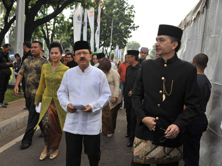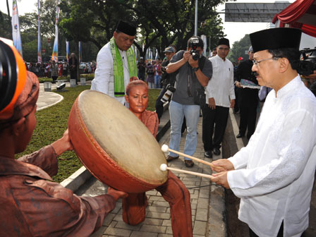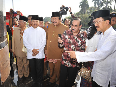 Gubernur DKI Jakarta Fauzi Bowo, meresmikan patung Tokoh Nasional asal Betawi, Mohammad Husni Thamrin (MHT),di Jl Medan Merdeka Selatan, Jakarta Pusat. Minggu (3/6). (Foto : Diskominfomas)