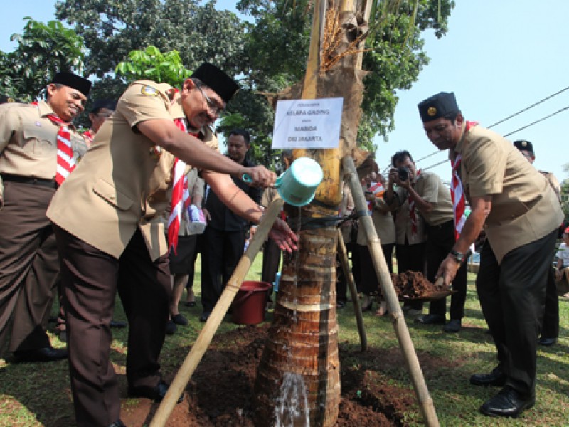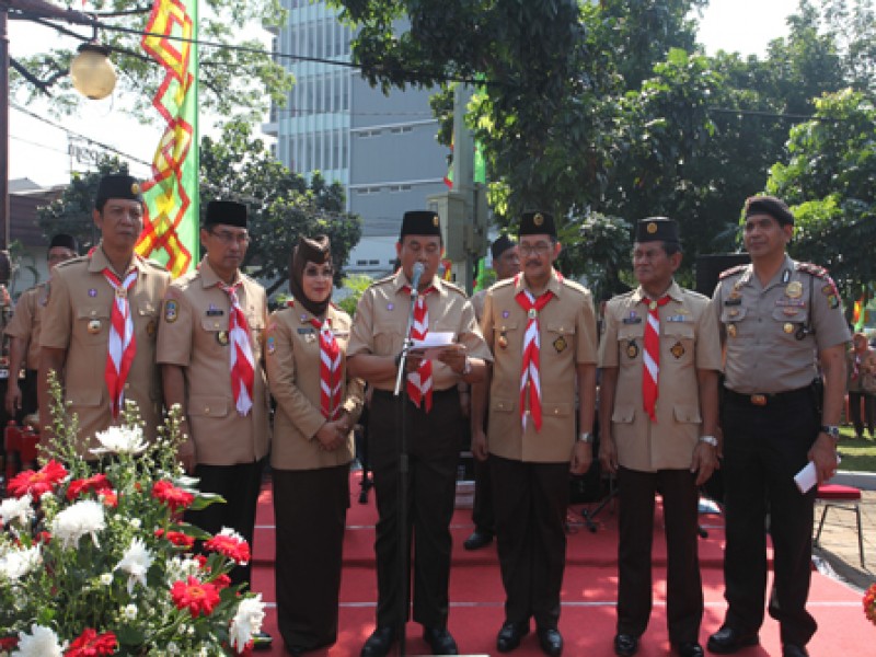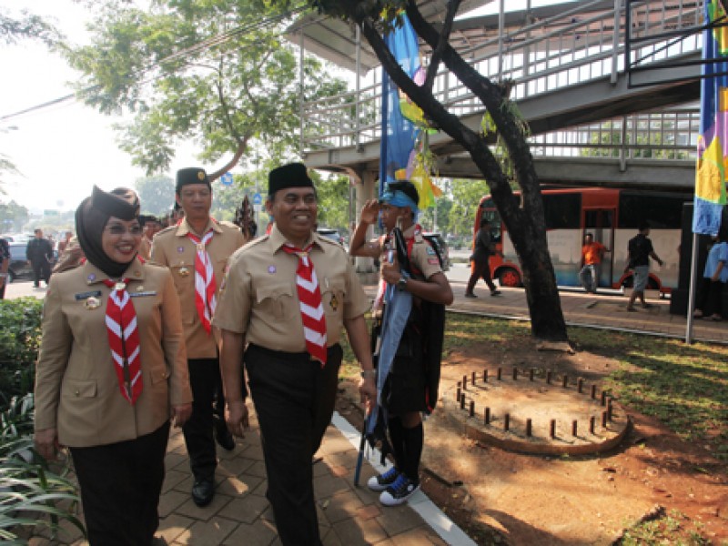 Sekretaris Daerah Provinsi DKI Jakarta Saefullah melakukan peresmian perubahan nama Taman Genjing menjadi Taman Pramuka bertepatan dengan HUT ke-53 Gerakan Pramuka Indonesia, Kamis (14/8). Taman Pramuka terletak di Jalan Pramuka Raya, Kelurahan Rawasari, Kecamatan Cempaka Putih, Jakarta Pusat.