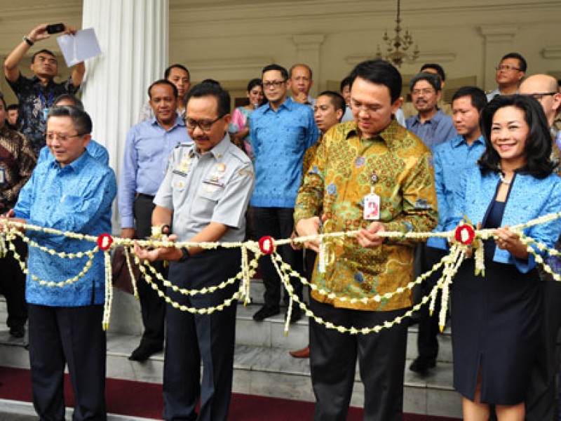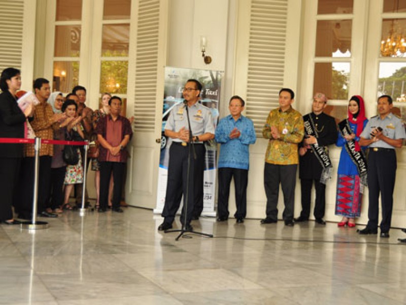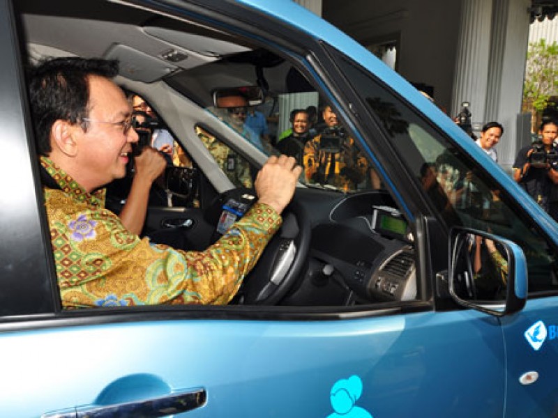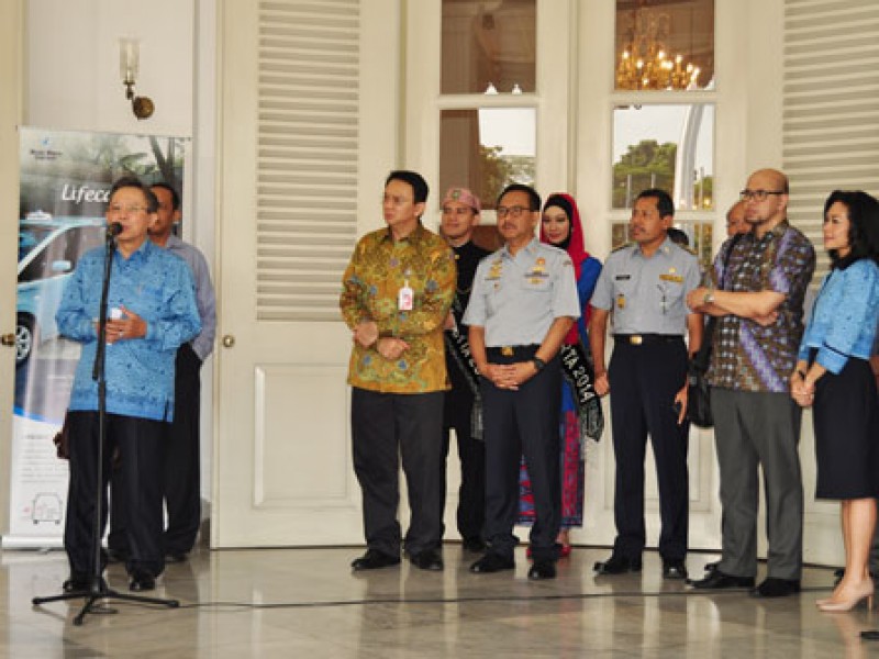 Wakil Gubernur DKI Jakarta Basuki Tjahaja Purnama meresmikan operasional angkutan umum ramah difabel Taksi Blue Bird Lifecare , di halaman Balaikota DKI Jakarta, Rabu (10/9). (Foto: Yopie/beritajakarta.com)