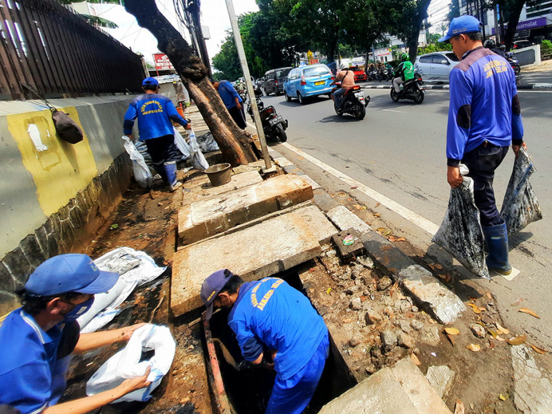 Saluran di Jalan Pasar Minggu Raya Dikuras