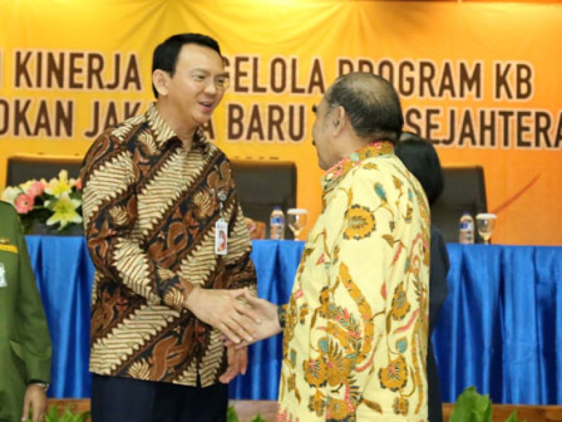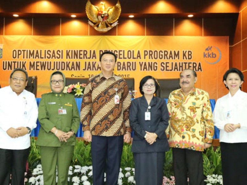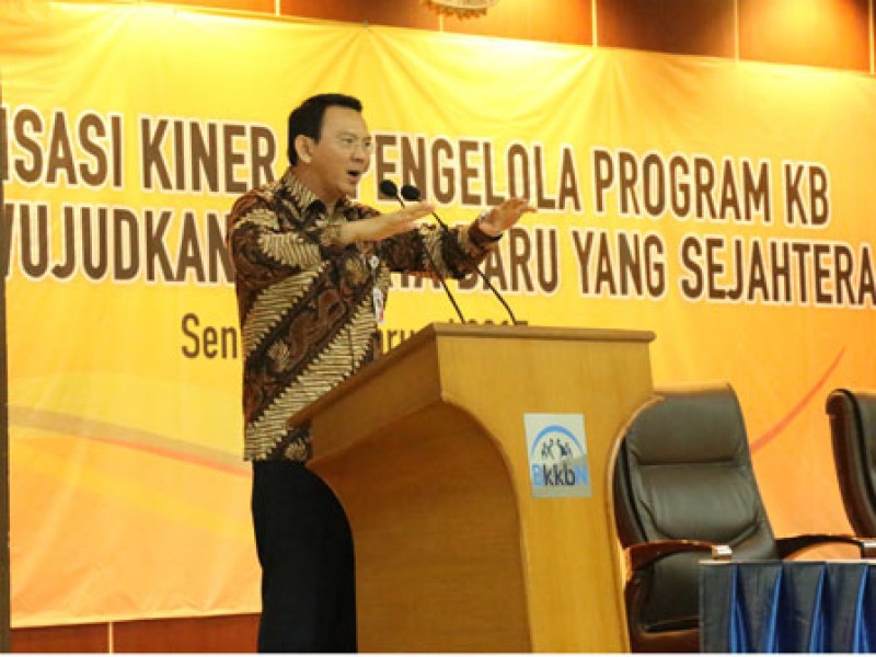 Gubernur DKI Jakarta, Basuki Tjahaja Purnama memberikan sambutan dan arahan dalam rangka pelaksanaan pembinaan dan konsolidasi Badan Pemberdayaan Masyarakat dan Perempuan dan Keluarga Berencana (BPMPKB) dengan petugas pelaksana dan pengelola program BPMPKB Provinsi DKI Jakarta, di kantor BKKBN Pusat, Jalan Halim Perdanakusuma, Jakarta Timur, Senin (16/2).