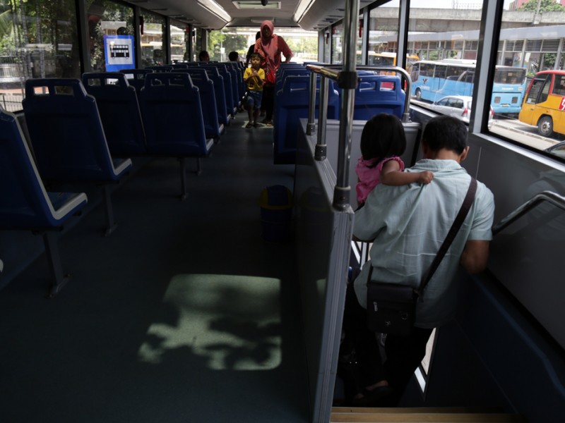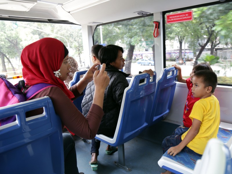 Bus tingkat gratis Jakarta City Tour cukup diminati. Selain sebagai sarana untuk mengunjungi destinasi wisata, keberadaan bus ini sangat berperan untuk menyukseskan kebijakan pembatasan kendaraan bermotor di ruas Jalan MH Thamrin hingga Jalan Medan Merdeka Barat. (Foto : Reza/Beritajakarta.com)