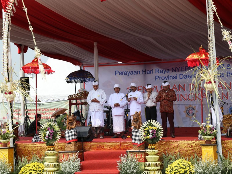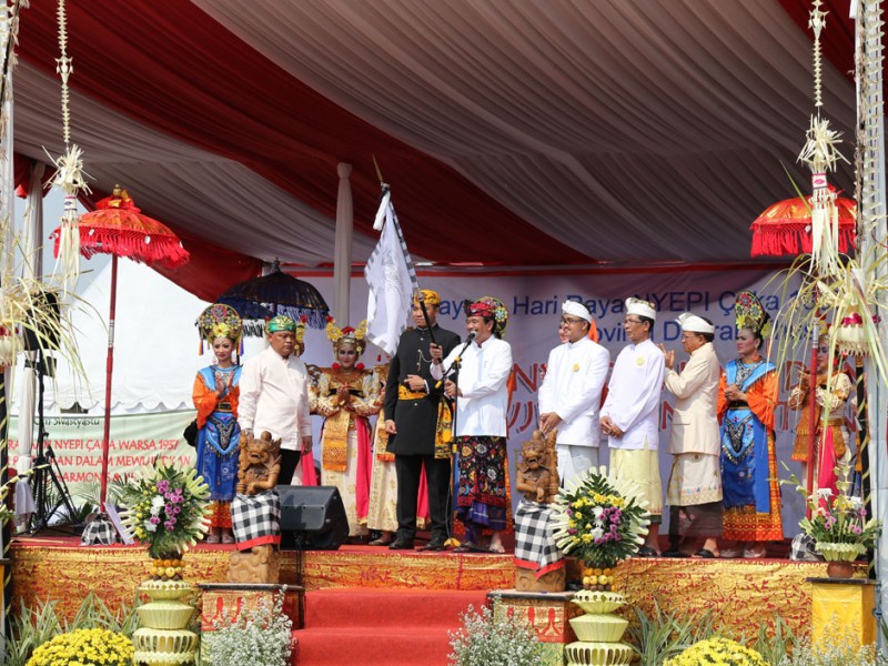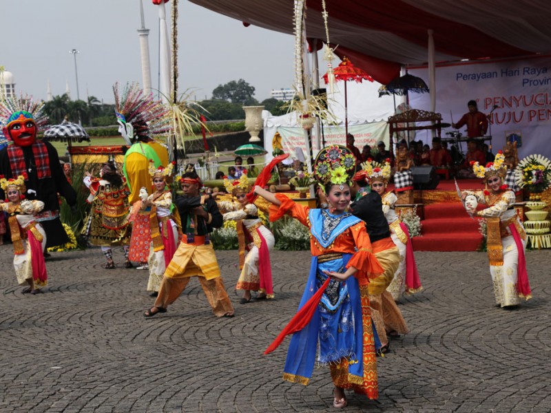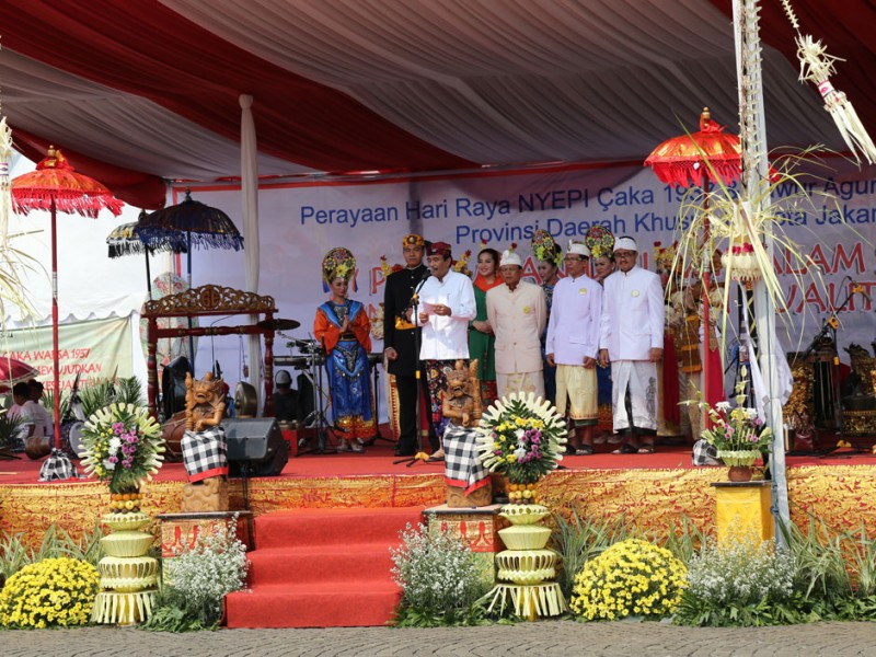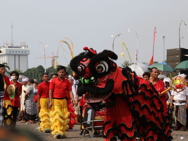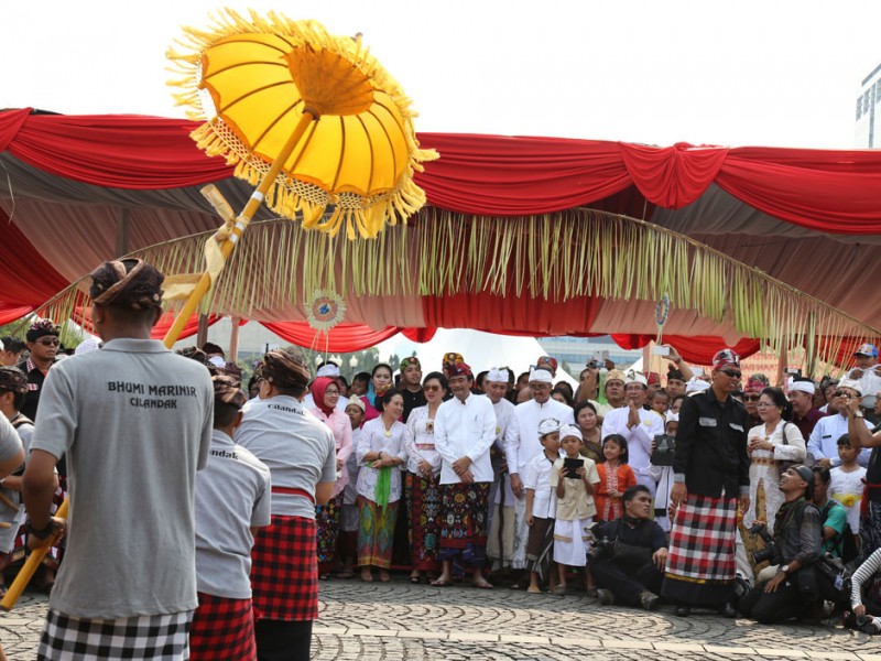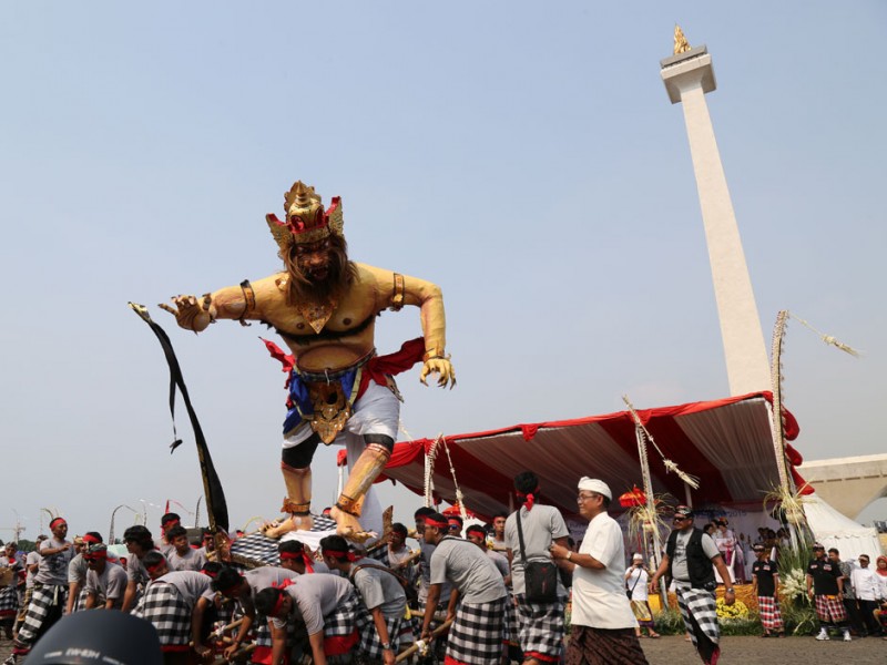 Wakil Gubernur DKI Jakarta, Djarot Saiful Hidayat membuka pelaksanaan Tawur Agung Kesanga dan Parade Ogoh-ogoh dalam rangka mempringati Hari Raya Nyepi Tahun Baru Saka 1937, di kawasan silang Monas, Gambir, Jakarta Pusat, Jumat (20/3/2015). Sebanyak 15 Ogoh-ogoh diarak mengelilingi kawasan Monas. (Foto: Reza/beritajakarta.com)