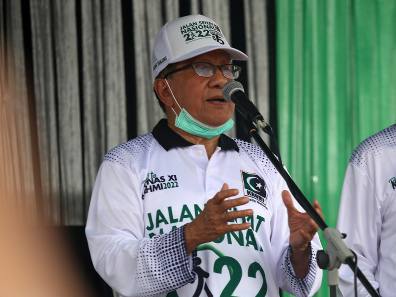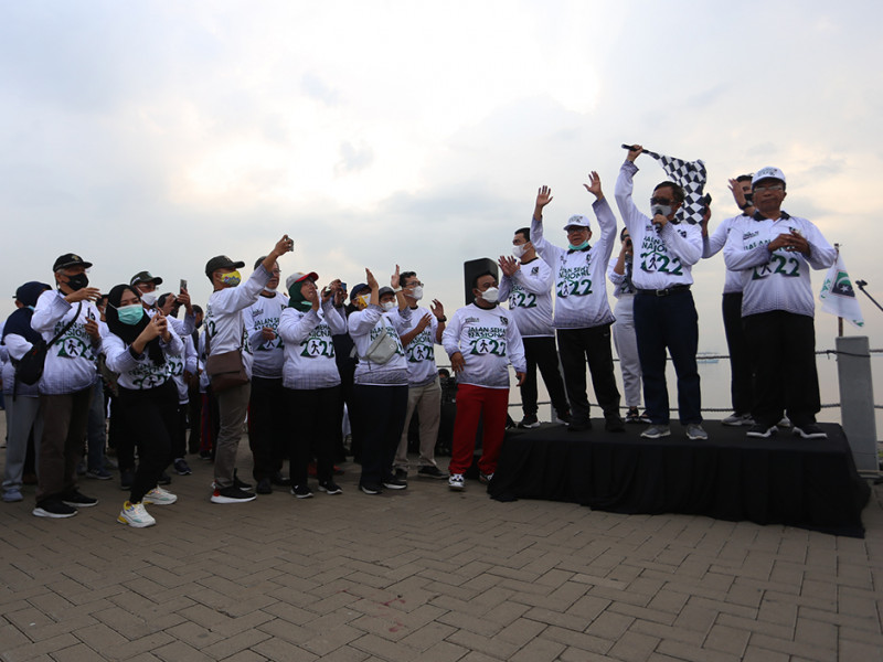 Wakil Gubernur DKI Jakarta, Ahmad Riza Patria mengikuti jalan sehat yang diadakan Majelis Nasional Korps Alumni Himpunan Mahasiswa Islam (MN KAHMI) di Pantai Maju, Kelurahan Kamal Muara, Penjaringan, Jakarta Utara, Sabtu (26/3). Kegiatan ini berlangsung selama 45 menit dengan jarak tempuh sepanjang enam kilometer. Turut hadir dalam acara, Menko Polhukam RI, Mahfud MD dan Mantan Ketua DPR RI yang juga Ketua Dewan Penasehat MN KAHMI, Akbar Tanjung. (Foto: Mochamad Tresna Suheryanto/beritajakarta.id)