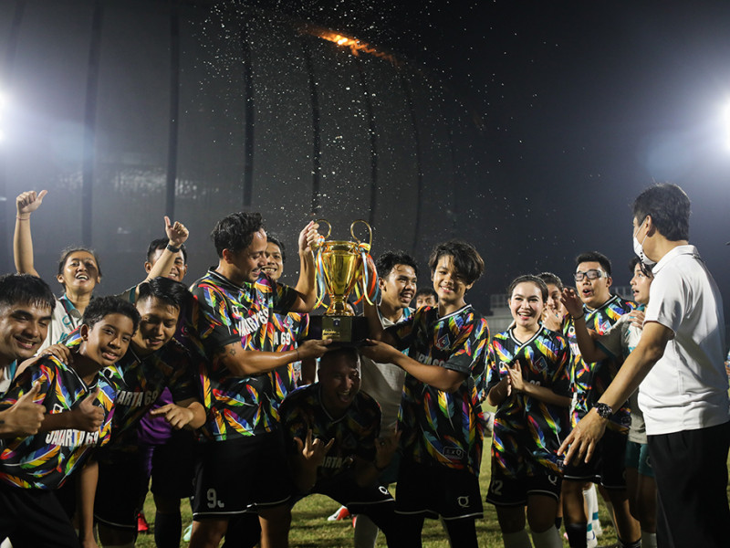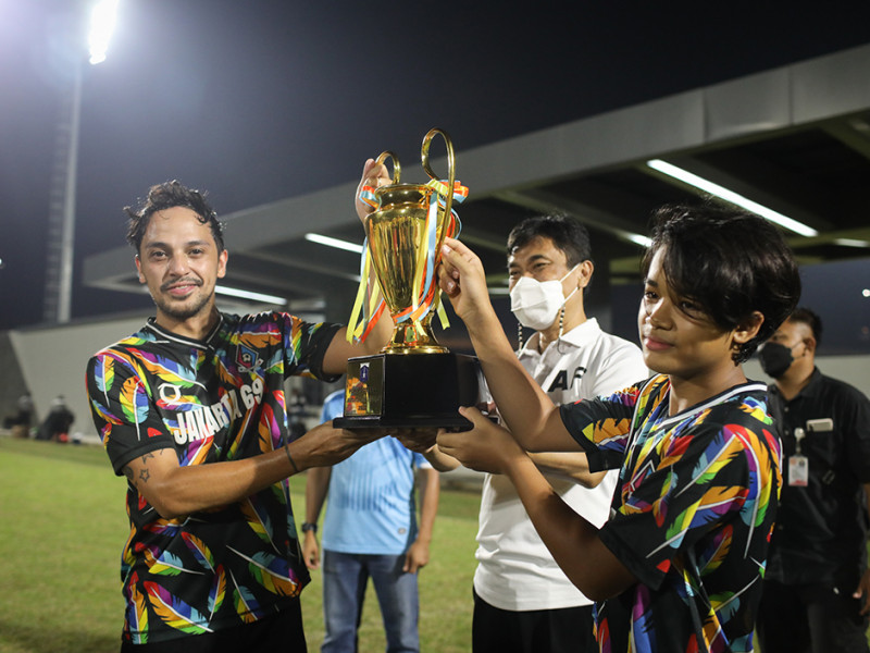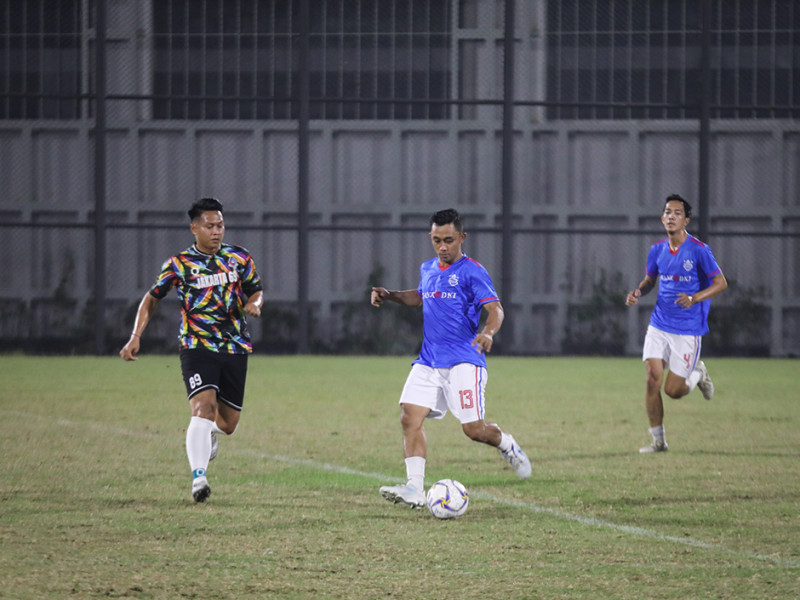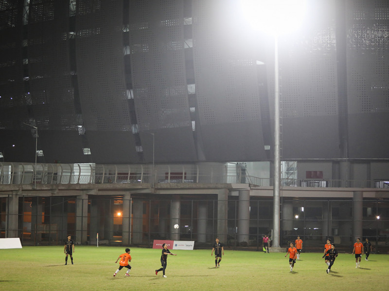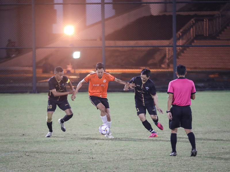 Aksi-aksi menawan mengolah si kulit bundar tersaji di lapangan latih Jakarta International Stadium (JIS), Sabtu (26/3). Para pemain dari delapan kesebelasan OPD, BUMD dan selebritas berjuang memenangkan pertandingan dalam Fun Football Jakarta International Stadium 2022. Saat laga puncak, tim Jakarta 69 FC berhasil mengalahkan Bank DKI FC dengan skor 4-3. (Foto: Nugroho Sejati/beritajakarta.id)
