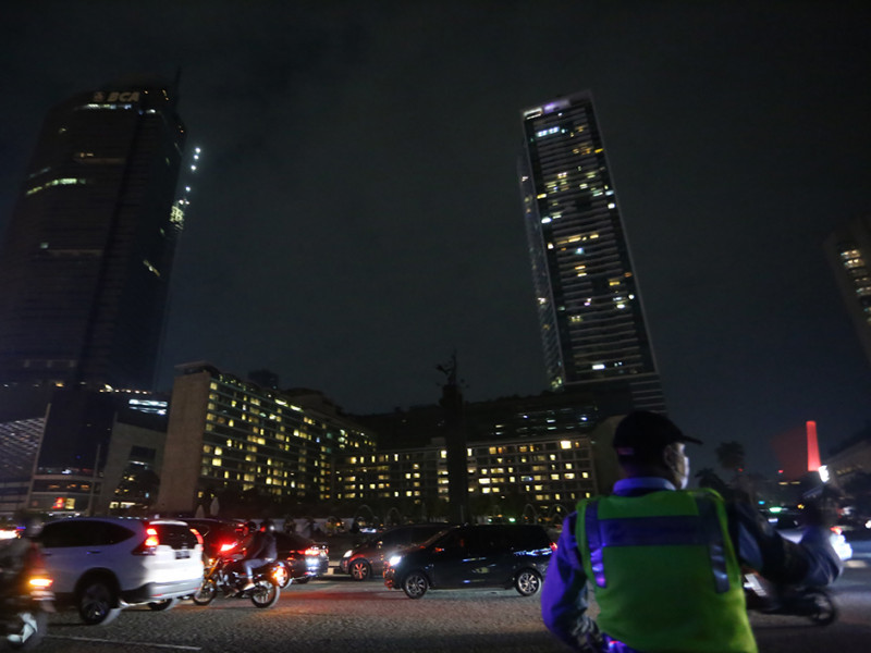 Mengacu Ingub tersebut seluruh bangunan gedung kantor Pemprov DKI Jakarta (kecuali rumah sakit, puskesmas, dan lain-lain), jalan protokol dan jalan arteri, serta seluruh simbol Jakarta dilakukan pemadaman lampu. (Foto: Mochamad Tresna Suheryanto/beritajakarta.id)