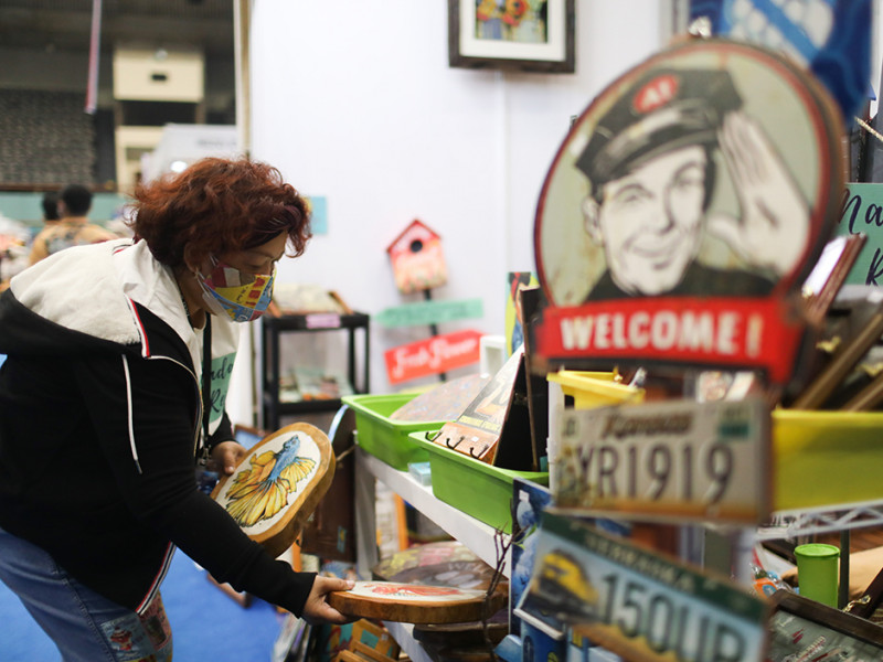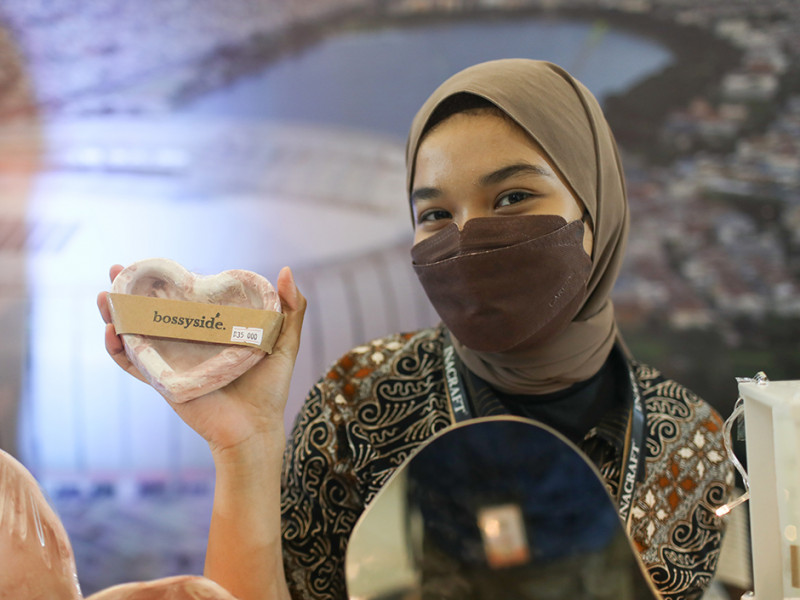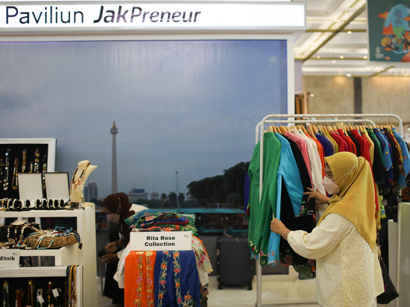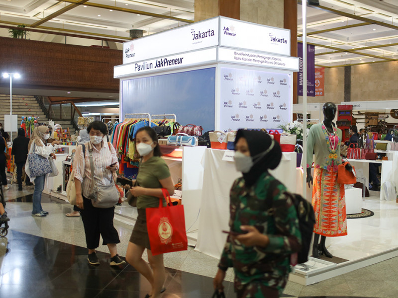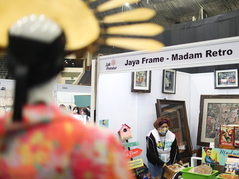 Sebanyak 18 Jakpreneur mengikuti Inacraft Exhibition 2022 di Jakarta Convention Center (JCC), Jakarta Pusat yang berlangsung 23 -27 Maret. Belasan pelaku usaha, mikro, kecil dan menengah (UMKM) binaan ini menjual beragam produk fesyen dan kriya. (Reza Hapiz/beritajakarta.id)