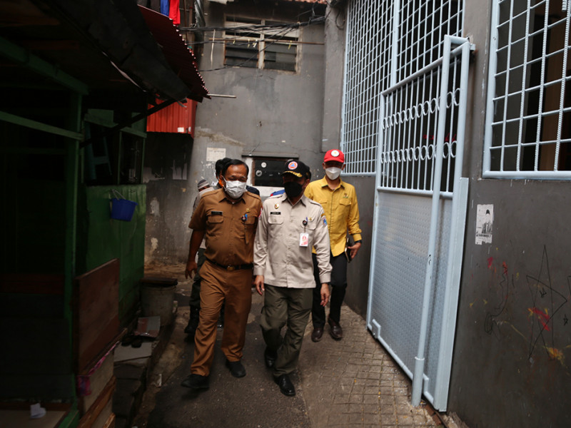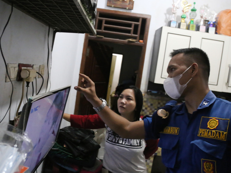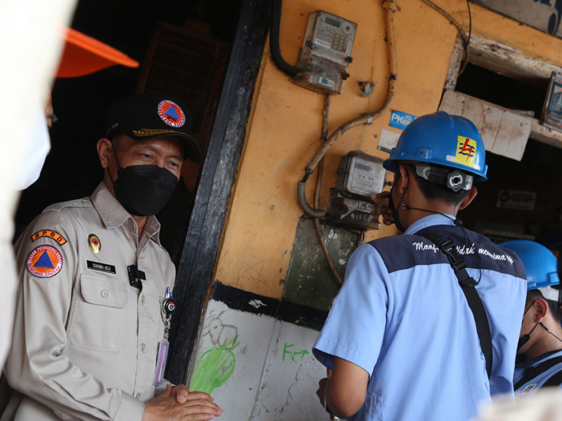 Sebanyak 300 personel gabungan BPBD, Gulkarmat, Nakertransgi, Bina Marga, Satpol PP, PLN UID Jakarta Raya, TNI dan Polri dikerahkan dalam Operasi Kolaborasi Cegah Kebakaran di Provinsi DKI Jakarta, Selasa (29/3) di k awasan Tambora, Jakarta Barat. Operasi meliputi pemeriksaan opal (pemeriksaan jaringan kabel udara hingga pemutusan aliran listrik ilegal), pemeriksaan instalasi listrik dalam rumah, pemeriksaan regulator dan selang kompor gas, pemeriksaan alat cegah kebakaran, serta penentuan titik untuk perbaikan instalasi listrik bagi masyarakat kurang mampu. (Foto: Reza Hapiz/beritajakarta.id)