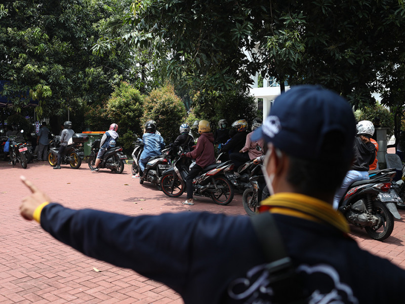Ratusan pemilik kendaraan bermotor menikmati layanan uji emisi di GOR Senam, Jalan Radin Inten II, Duren Sawit, Jakarta Timur, Selasa (29/3). Suku Dinas Lingkungan Hidup (Sudin LH) Jakarta Timur menggelar uji emisi gratis dalam rangka pelaksanaan Evaluasi Kualitas Udara Perkotaan (EKUP) Tahun 2022. Uji emisi digelar selama tiga hari mulai 29-31 Maret 2022 di tiga lokasi berbeda. (Foto: Nugroho Sejati/beritajakarta.id)
