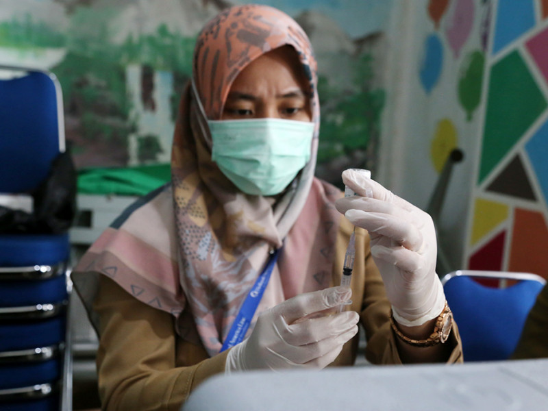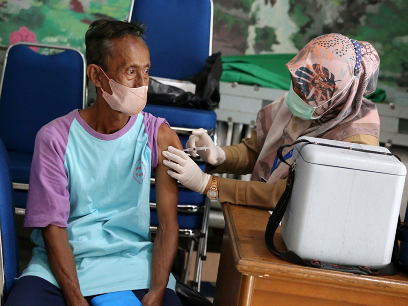 Sebanyak 55 warga div aksin COVID-19 dosis pertama, kedua dan ketiga atau booster di Kantor Kelurahan Kalianyar, Tambora, Jakarta Barat, Selasa (29/3). Layanan vaksinasi dinamis di kantor kelurahan tersebut menyasar warga umum, mulai dari anak-anak hingga lansia dengan menyediakan vaksin Sinovac, AstraZeneca, dan Pfizer. (Foto: Reza Hapiz/beritajakarta.id)